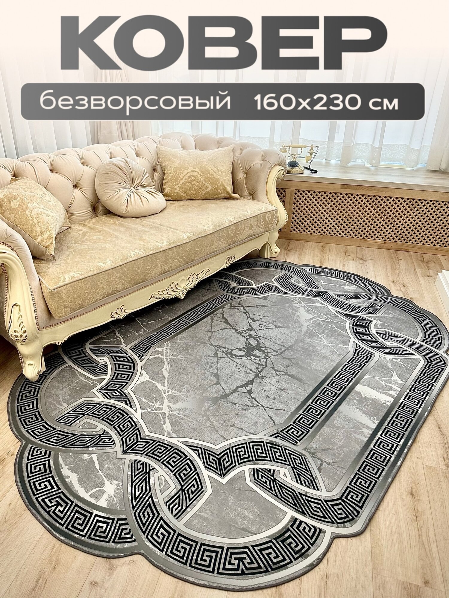 Ковер 160х230 см безворсовый на пол в гостиную, спальню, кухню, Like_House