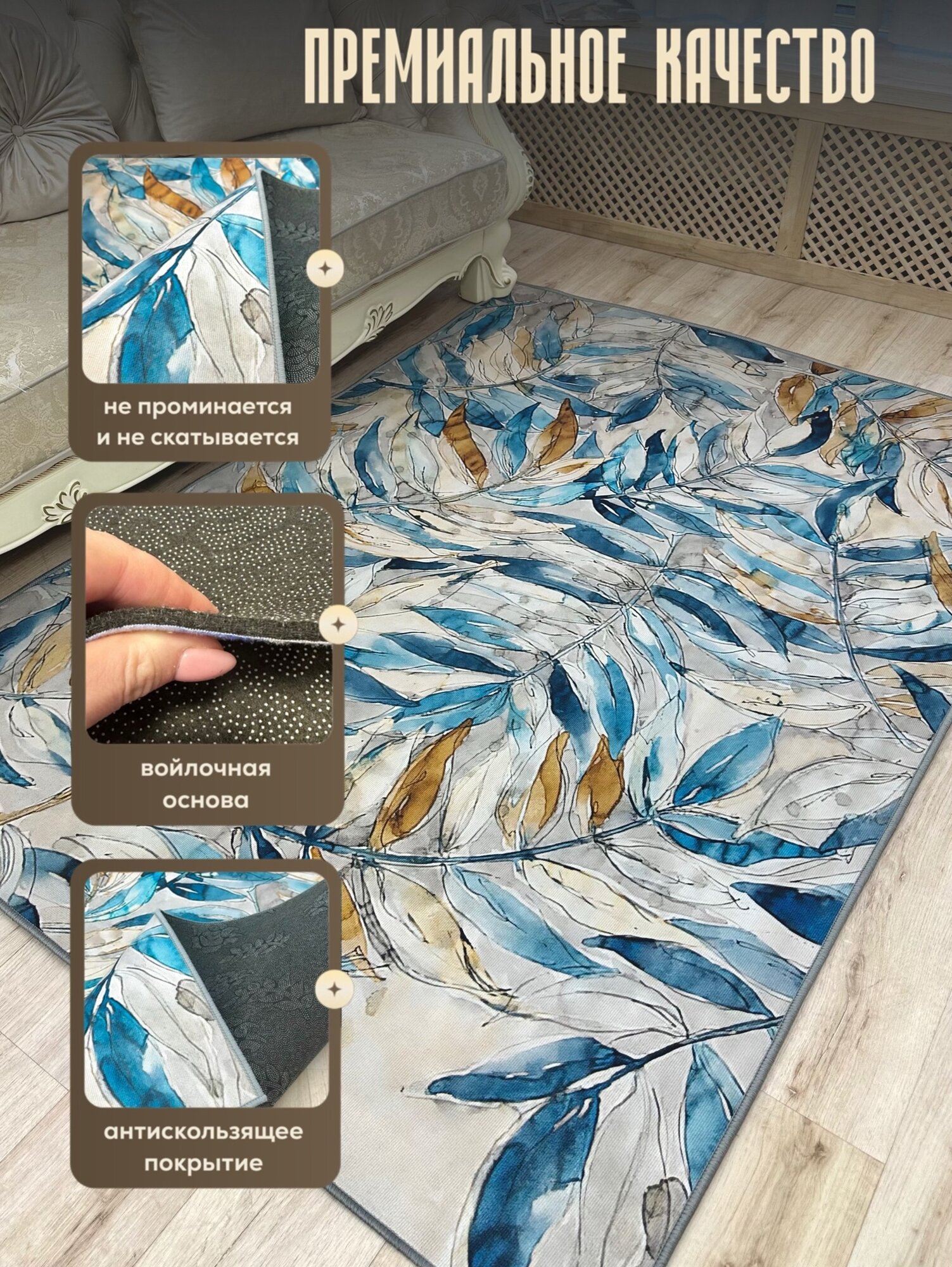 Ковер безворсовый на пол, противоскользящий, 160*230см/Like_house