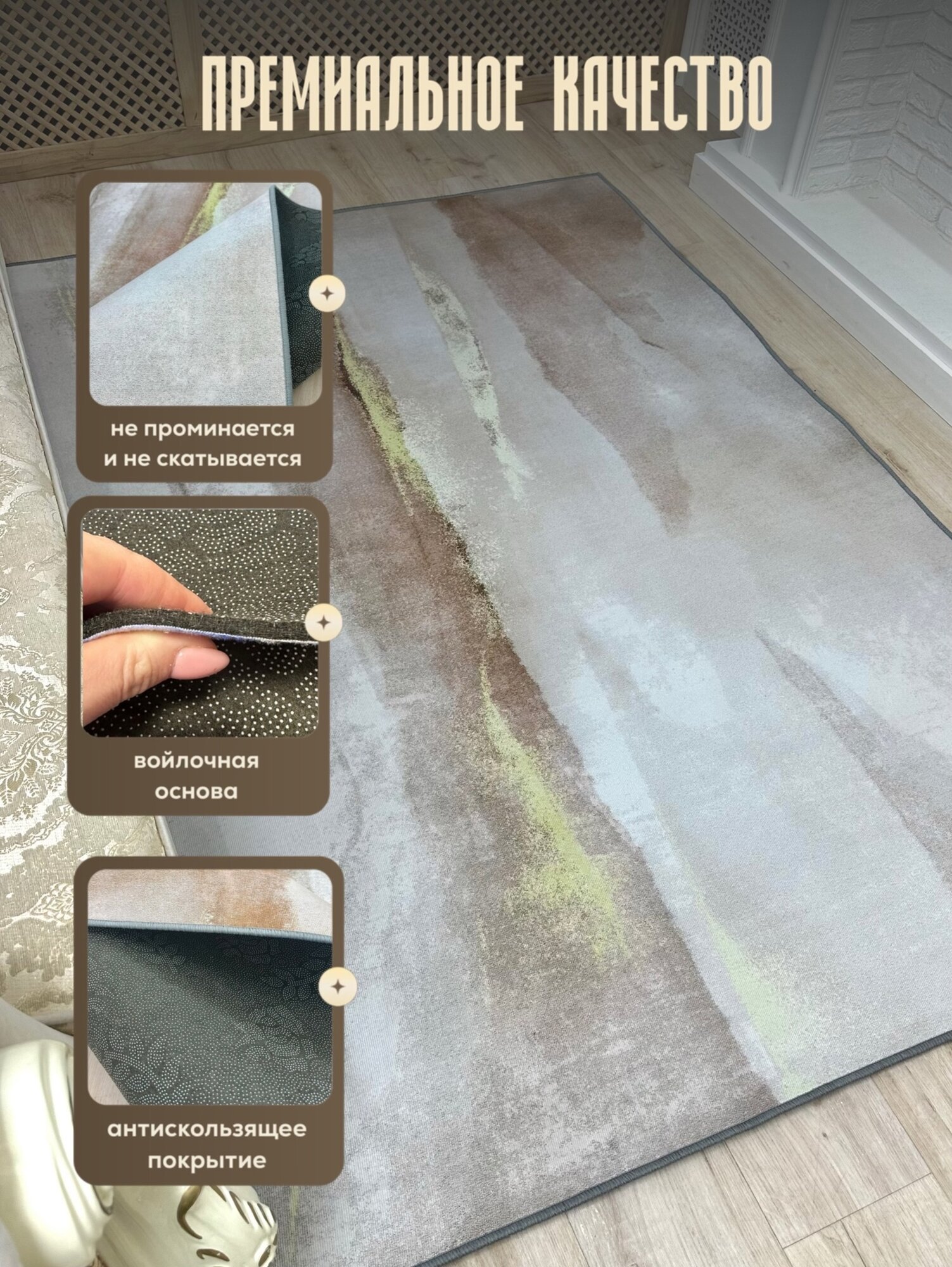 Ковер 160х230см безворсовый на пол в гостиную, спальню, кухню, Like_House