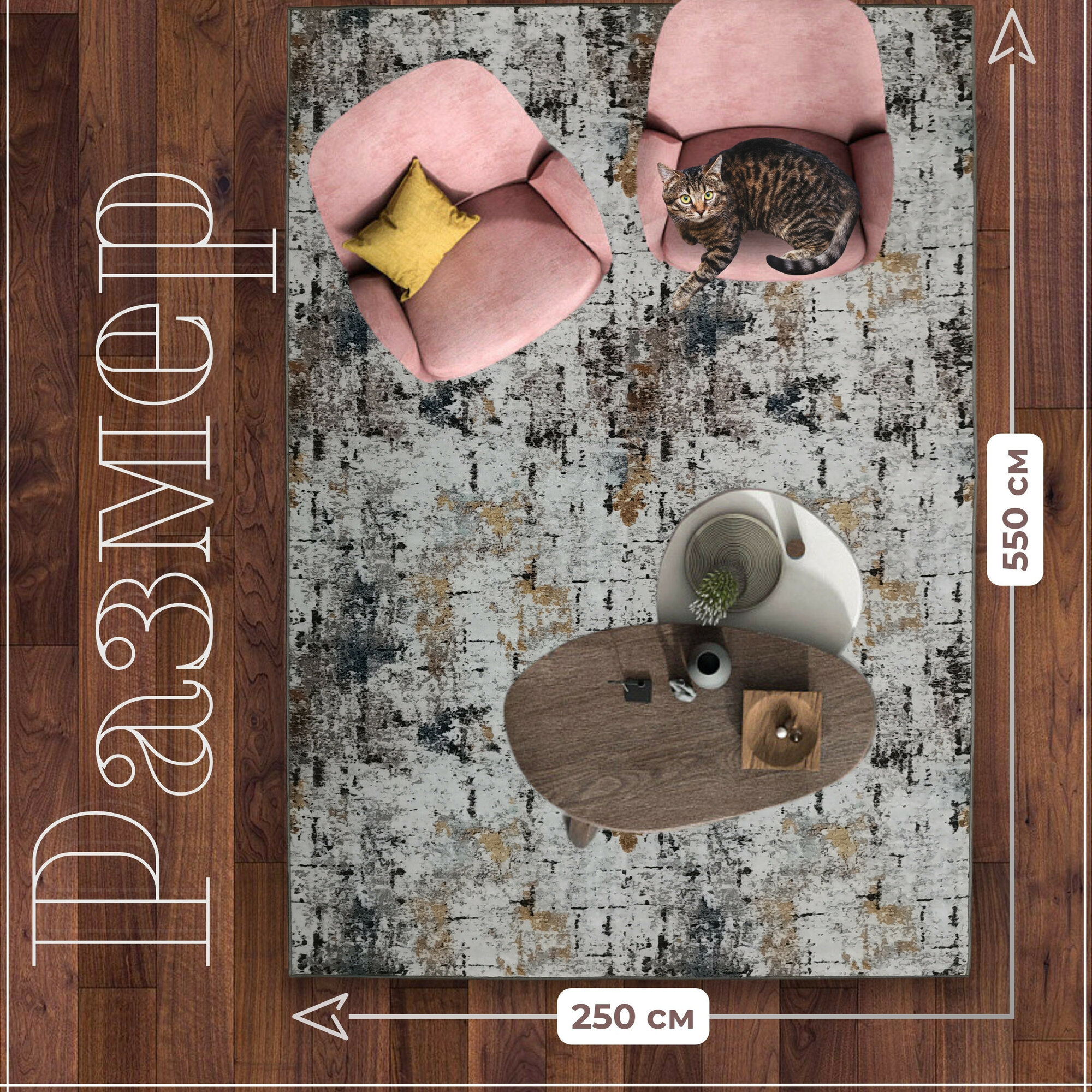 Ковер безворсовой "Стиль", многоцветный на войлоке. Размер 500х500 см