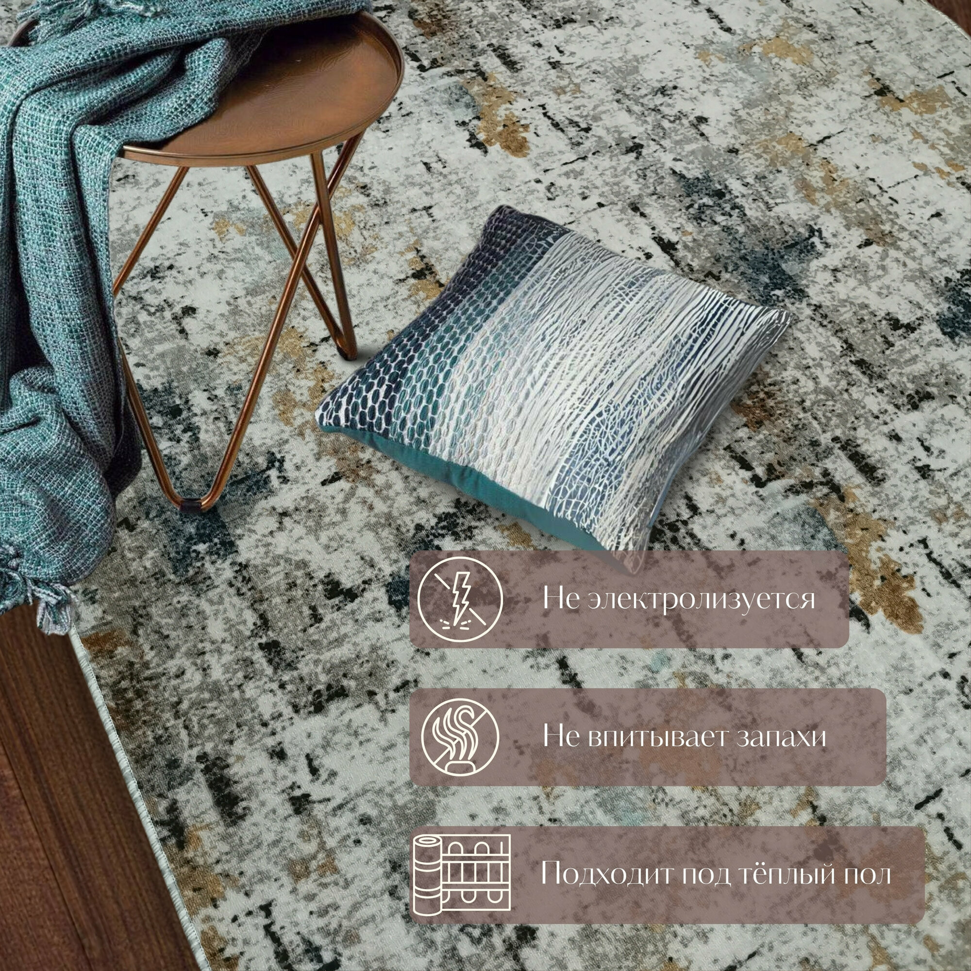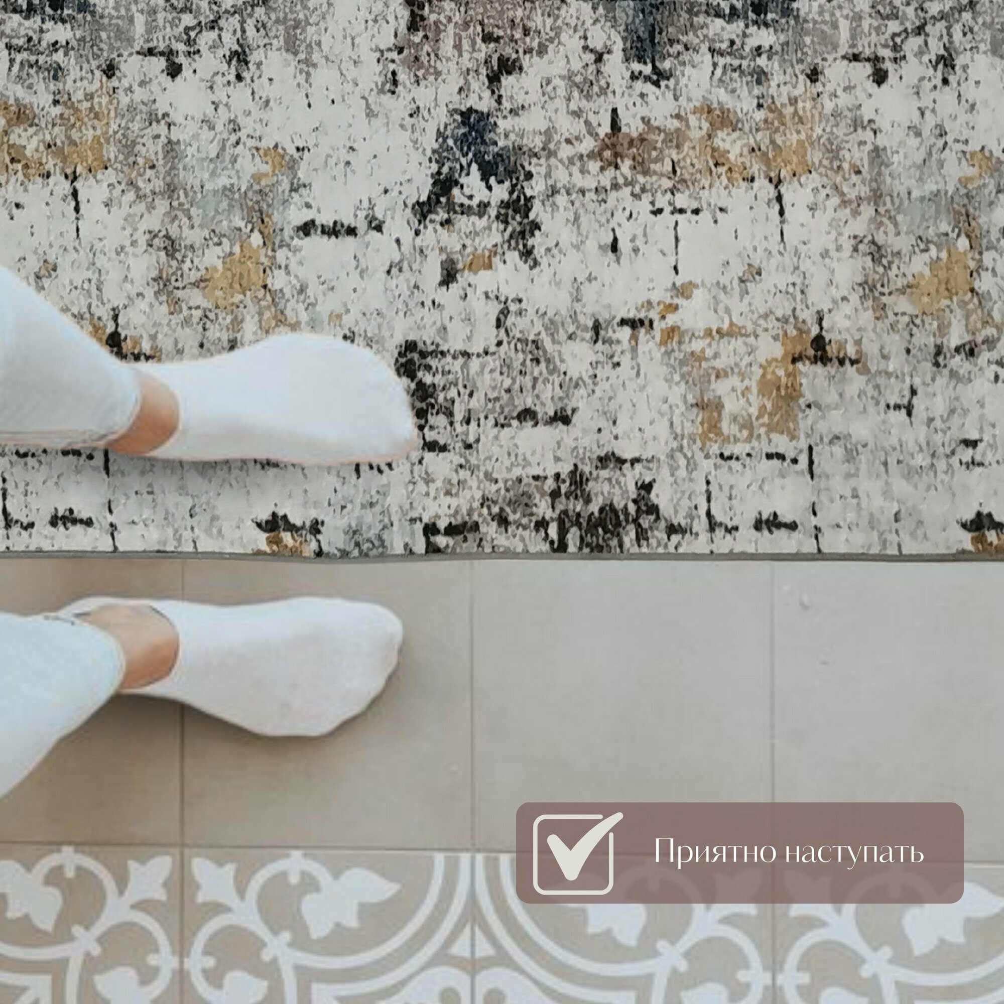 Безворсовый , противоскользящий коврик CarpetWorld "Мрамор" , полипропилен , микрофибра , прямоугольный , 100x60см.