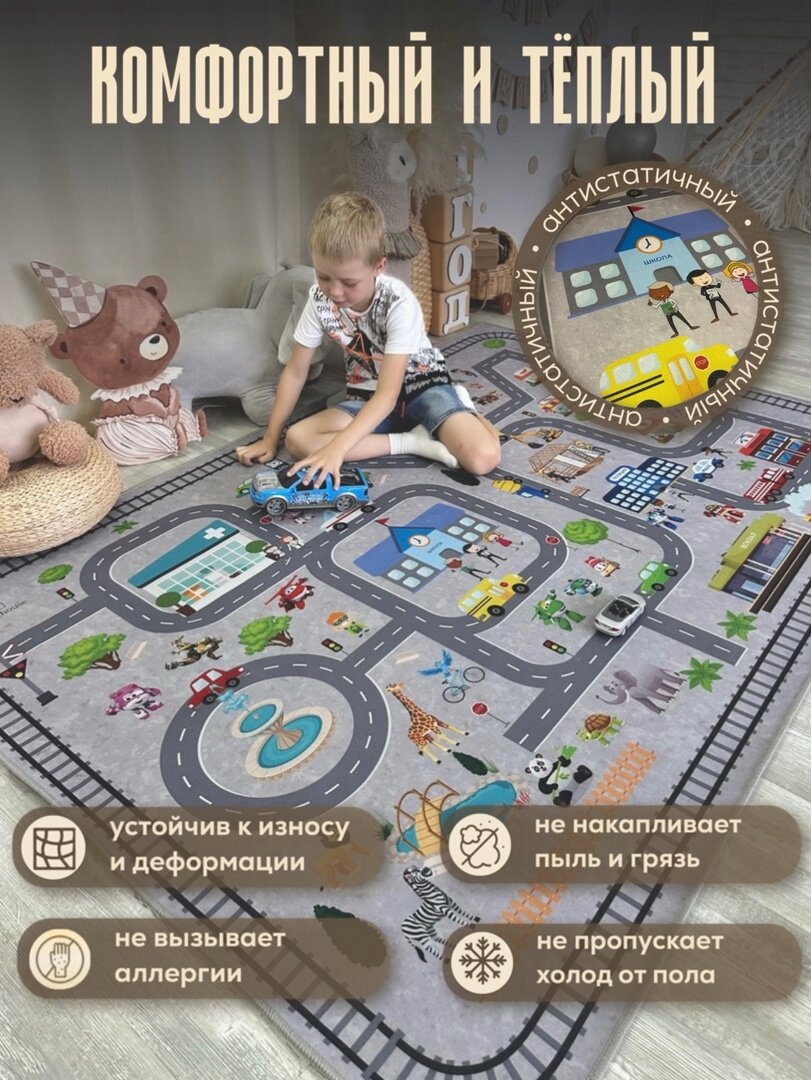 Ниже Вы можете прочитать отзывы на Ковер в детскую комнату для мальчика , детский игровой коврик с дорогой, 140*200см/ Like_house, ознакомится с подробными характеристиками, посмотреть интересные обзоры и фотографии на Ковер в детскую комнату для мальчика , детский игровой коврик с дорогой, 140*200см/ Like_house.