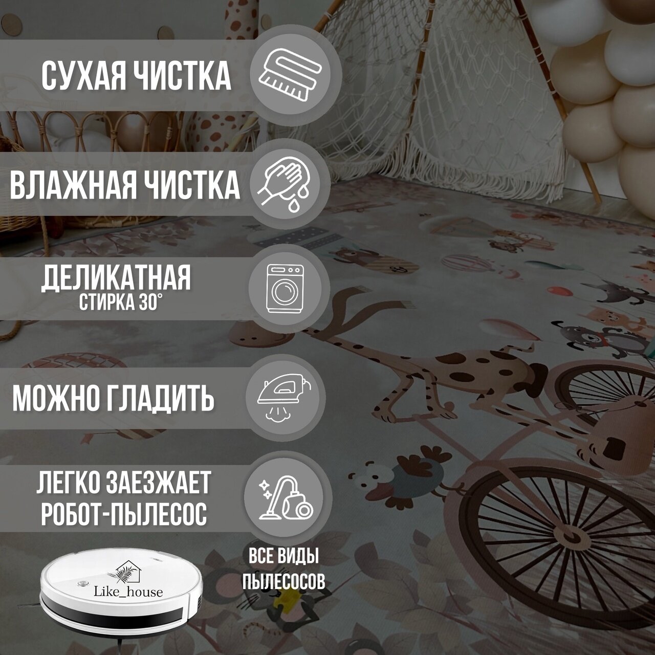 Ковер безворсовый в гостиную, детскую, спальню, 140*200см/Like_house
