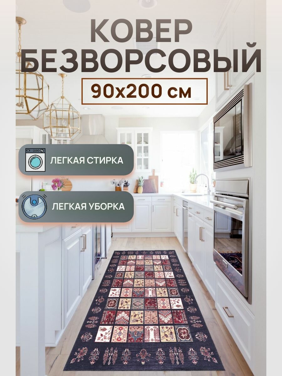 Ковер DivaHome, безворсовый, с принтом, дорожка, 90x200см, Турция, односторонний