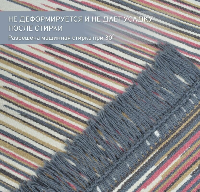 Ковер безворсовый на пол турецкий Килим, 80х150, бежевый