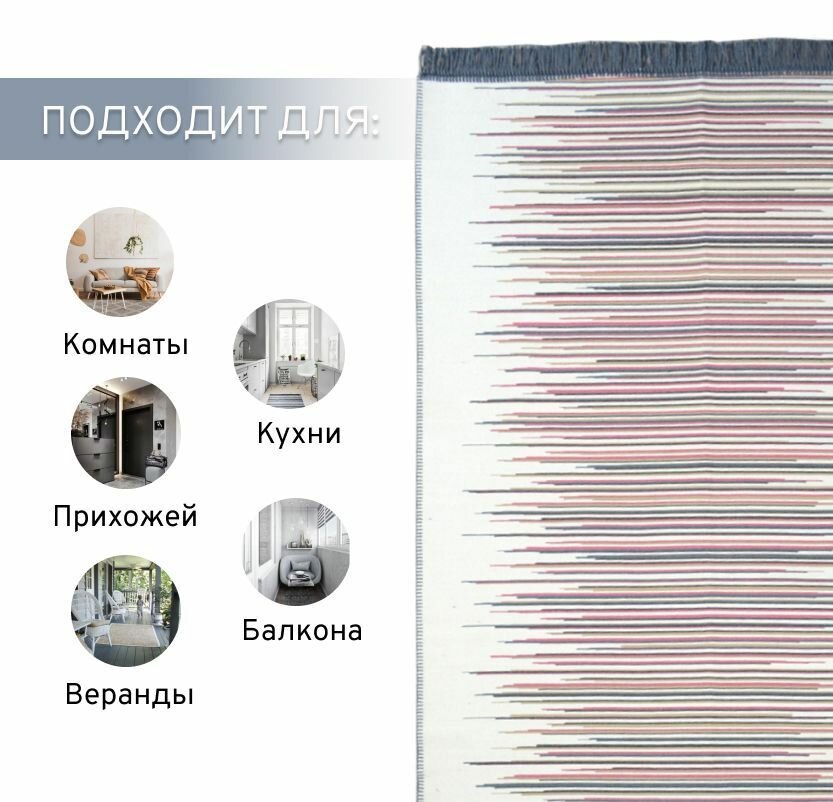 Ковер безворсовый на пол турецкий Килим, 80х150, бежевый, синий
