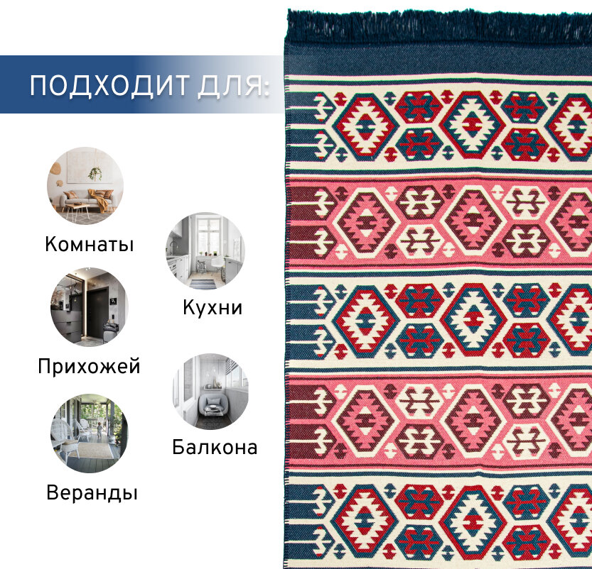 Ковер безворсовый на пол турецкий Килим, 80х150, красный, синий
