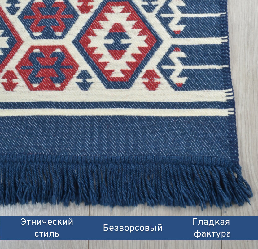СохранитьКовер безворсовый на пол турецкий Килим, 60х90, синий, красный интересное: