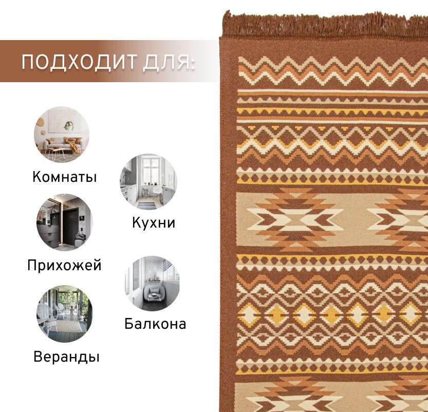 СохранитьКовер безворсовый на пол турецкий Килим, 60х90, коричневый интересное: