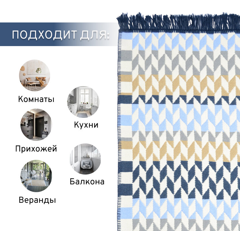 СохранитьКовер безворсовый на пол турецкий Килим, 100х200, бежевый, синий интересное: