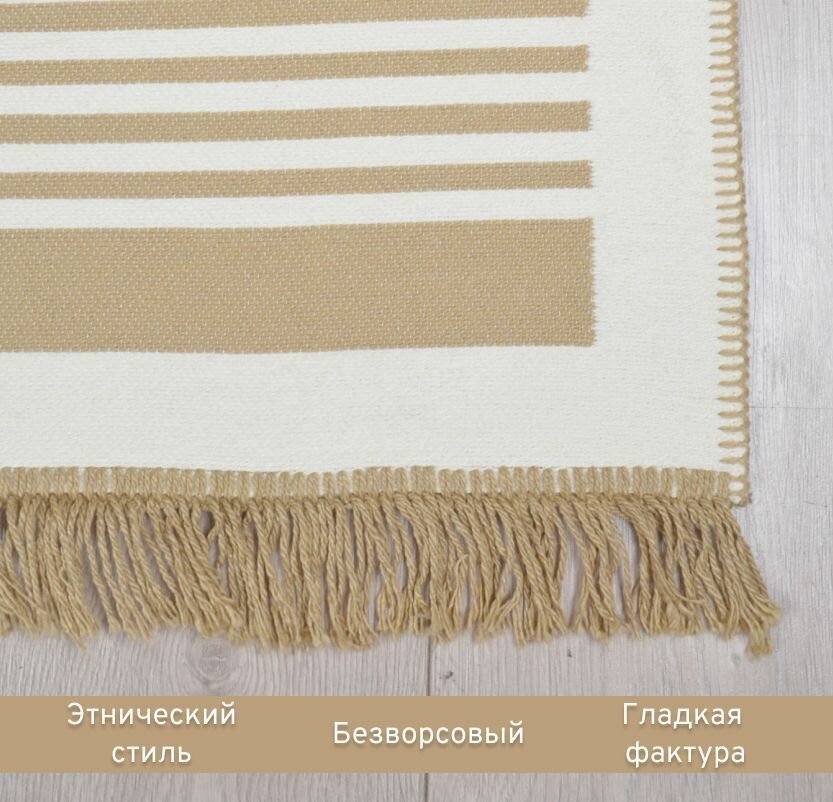 Купить Ковер безворсовый на пол турецкий Килим, 80х150, бежевый