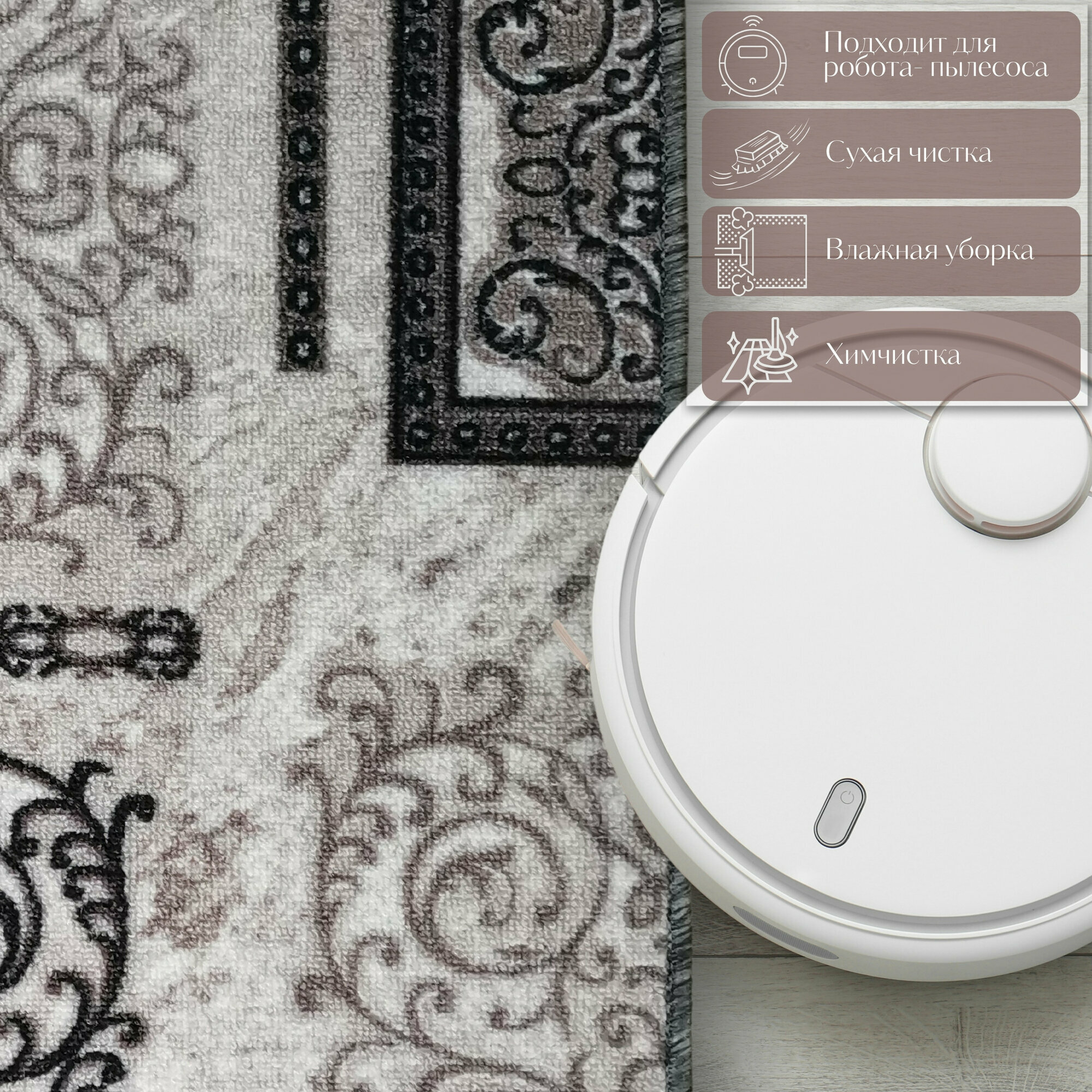 Ковер безворсовой "Узор", серо-коричневый на войлоке. Размер 150х300 см