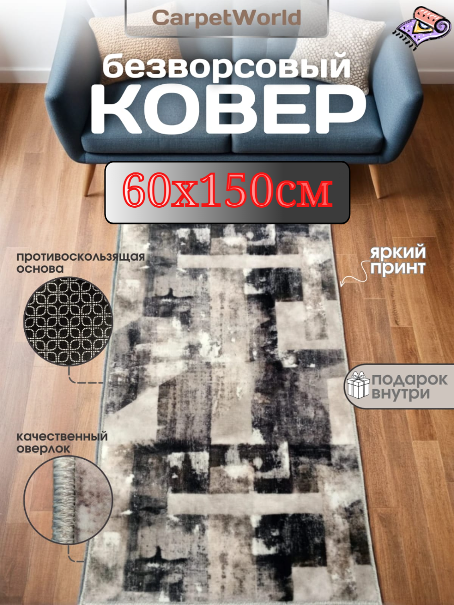 СохранитьБезворсовый , противоскользящий коврик CarpetWorld "Дымка" , полипропилен , микрофибра , прямоугольный , 60x150см. интересное: