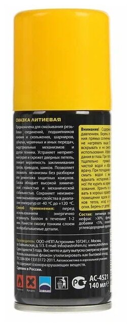 Литиевая смазка Astrohim, 140 мл, аэрозоль, АС - 4521 2585236 Astrohim .