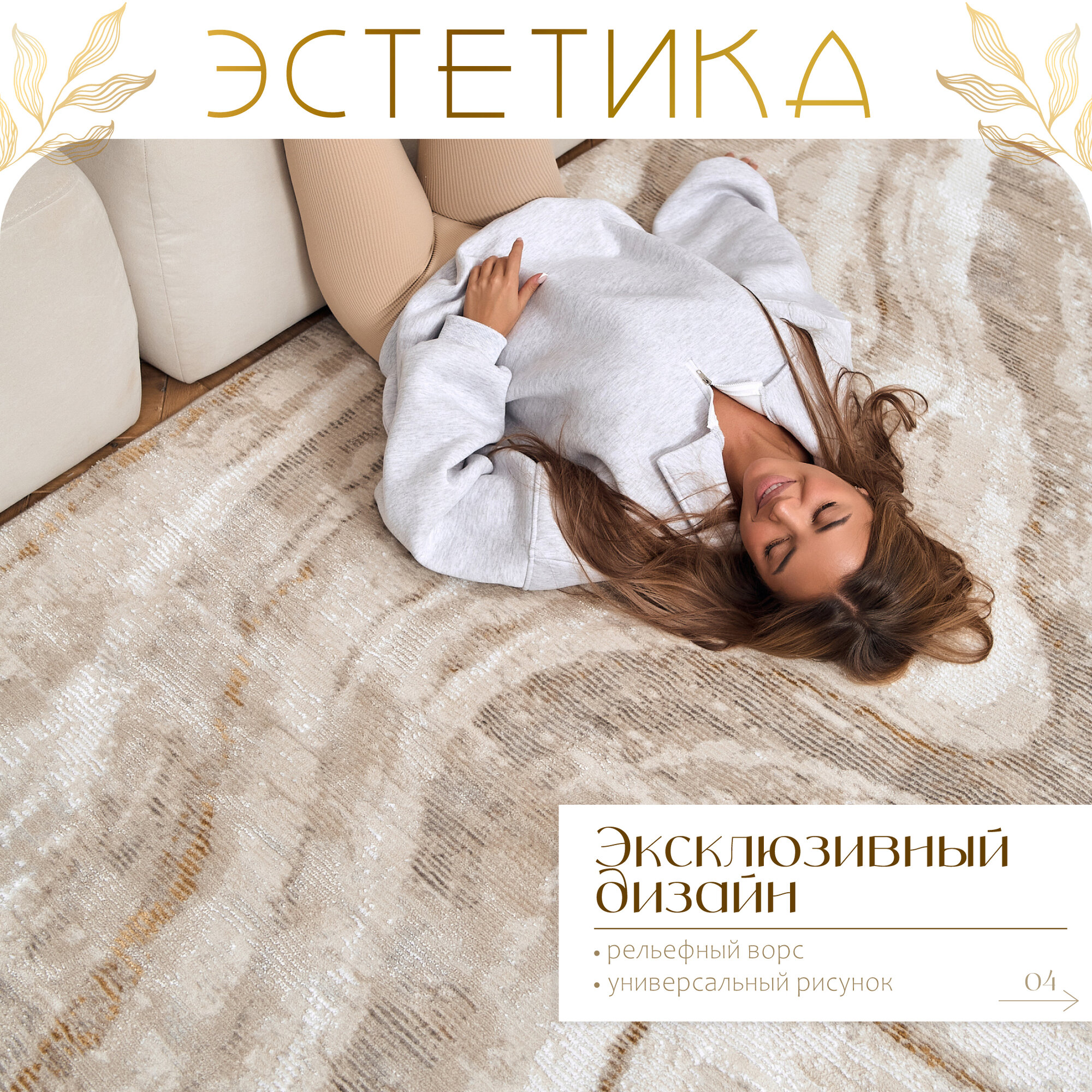 Ковер MERINO Mersi 150x230 см, прямоугольный, бежевый, золотистый интересное: