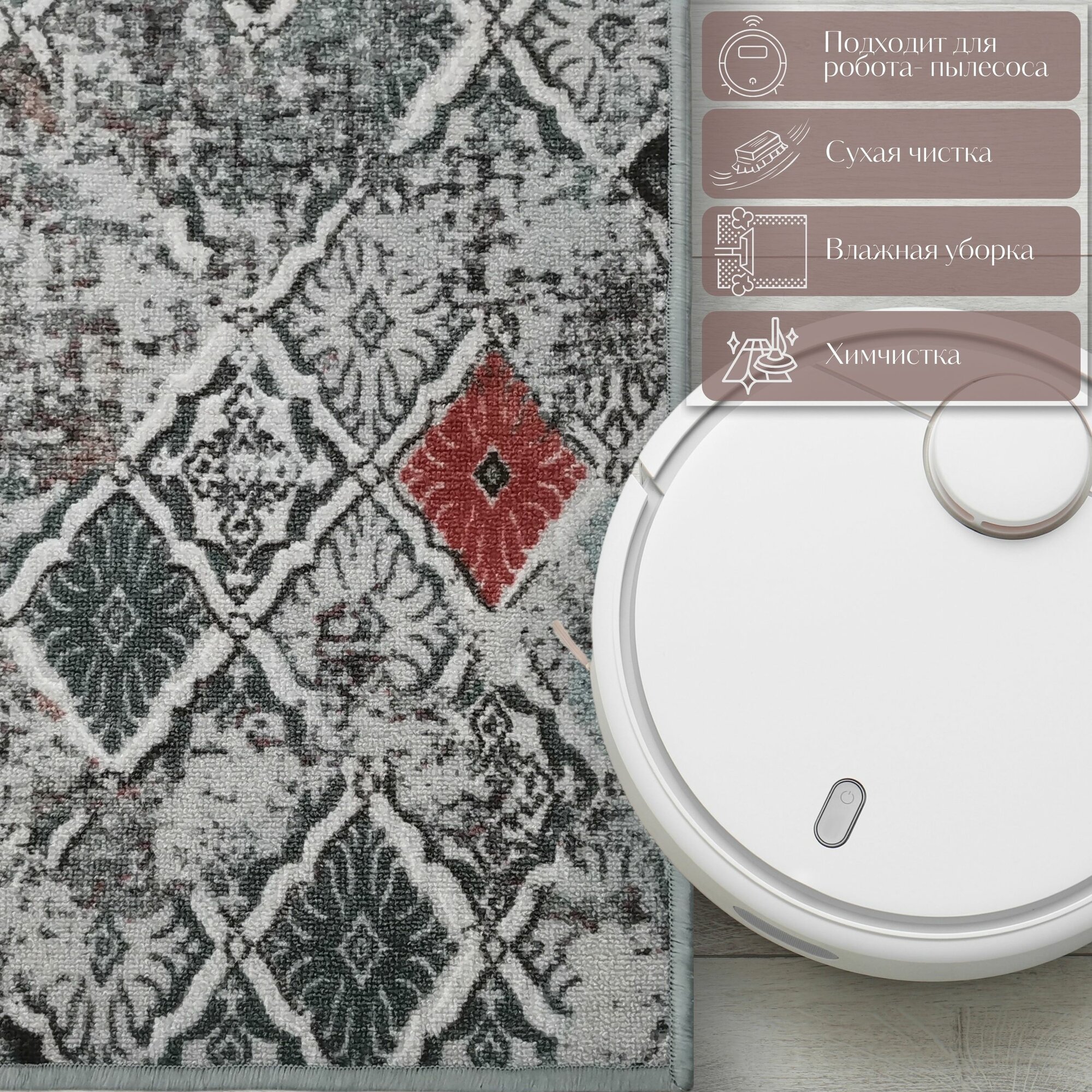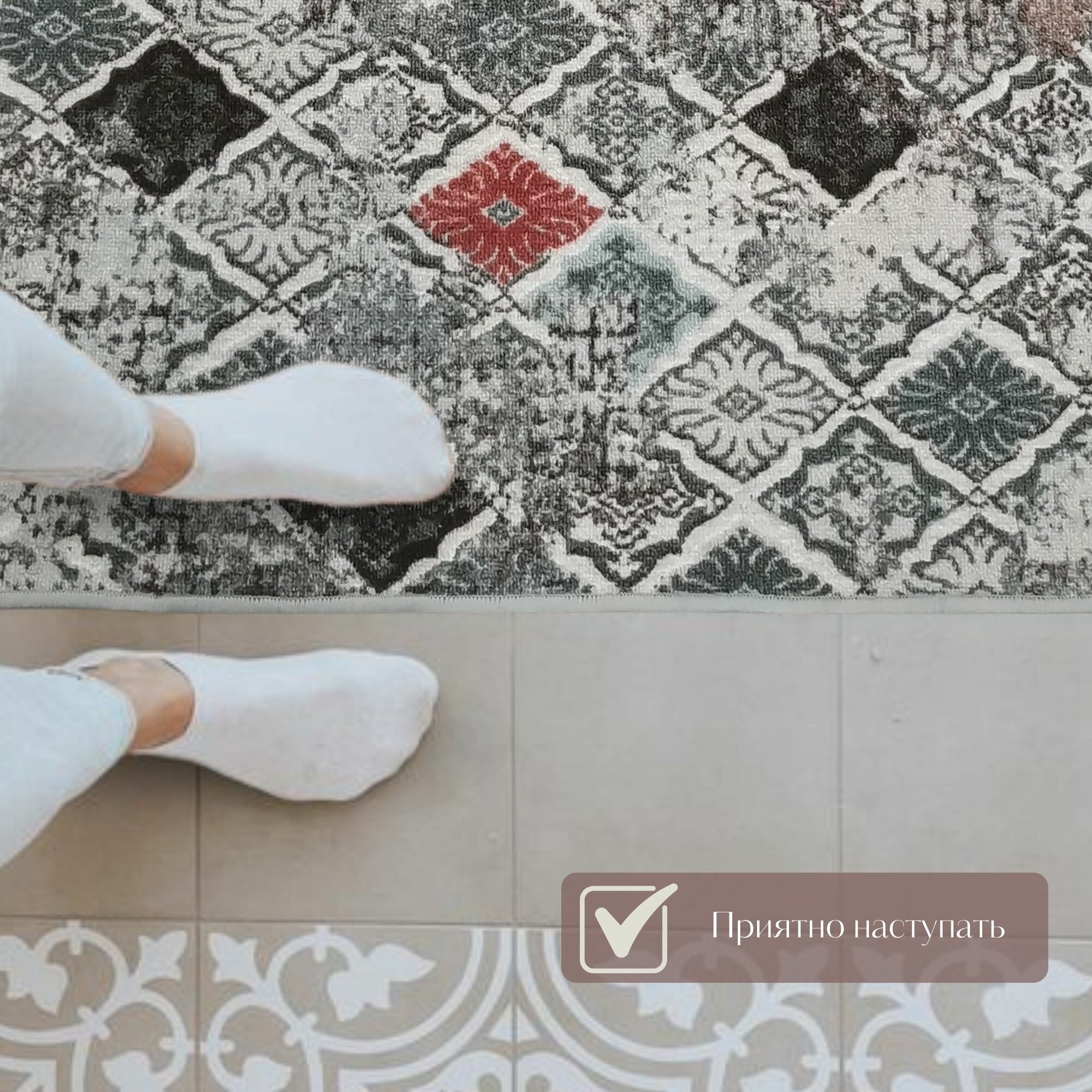 Безворсовый , противоскользящий коврик CarpetWorld "Мрамор" , полипропилен , микрофибра , прямоугольный , 100x60см.