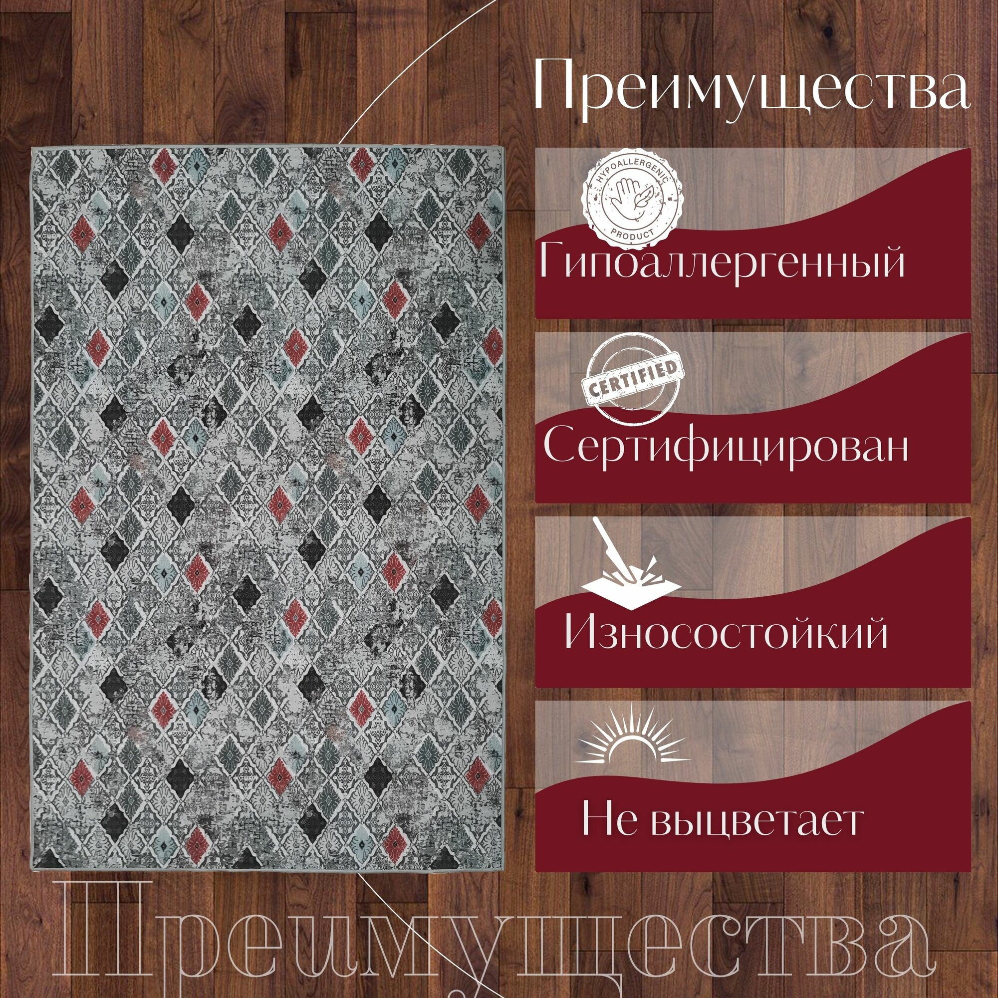 Купить Ковер безворсовой "Duglas", узор многоцветный на войлоке. Размер 120х180 см