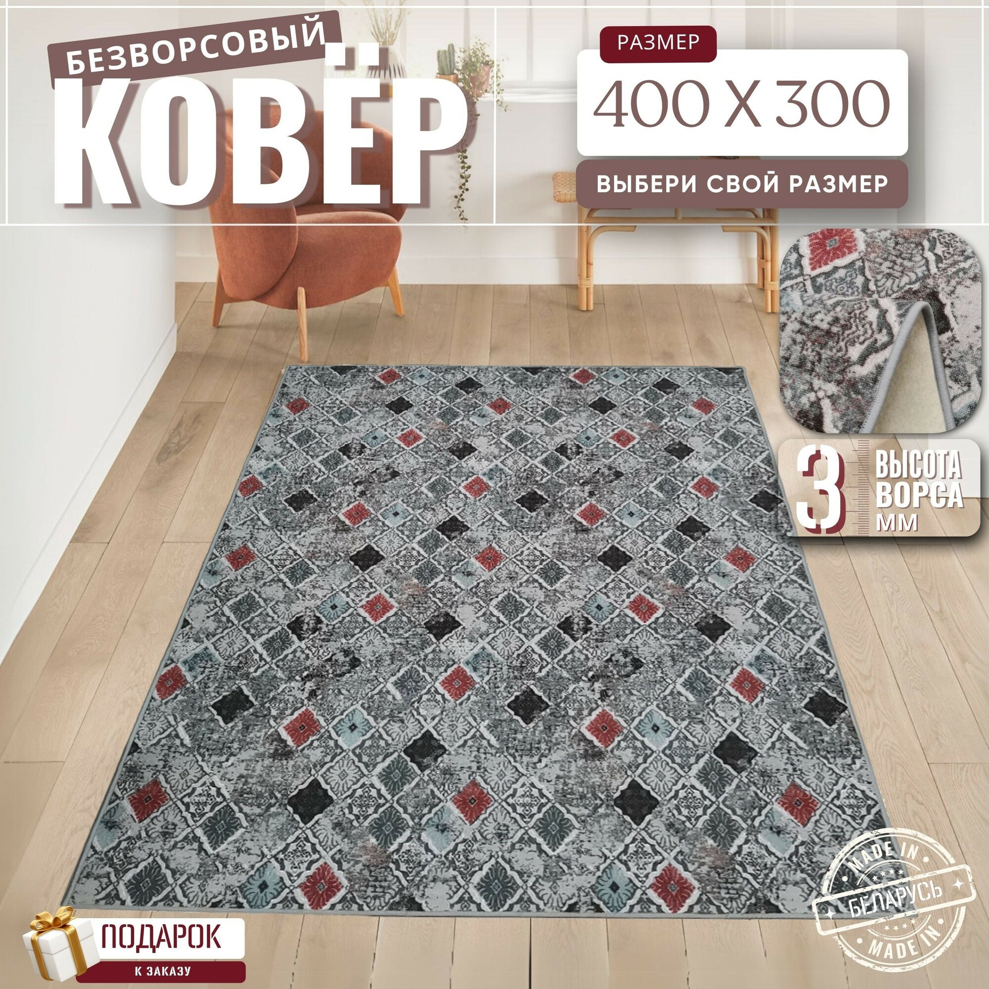 Ковер безворсовой "Duglas", узор многоцветный на войлоке. Размер 400х600 см