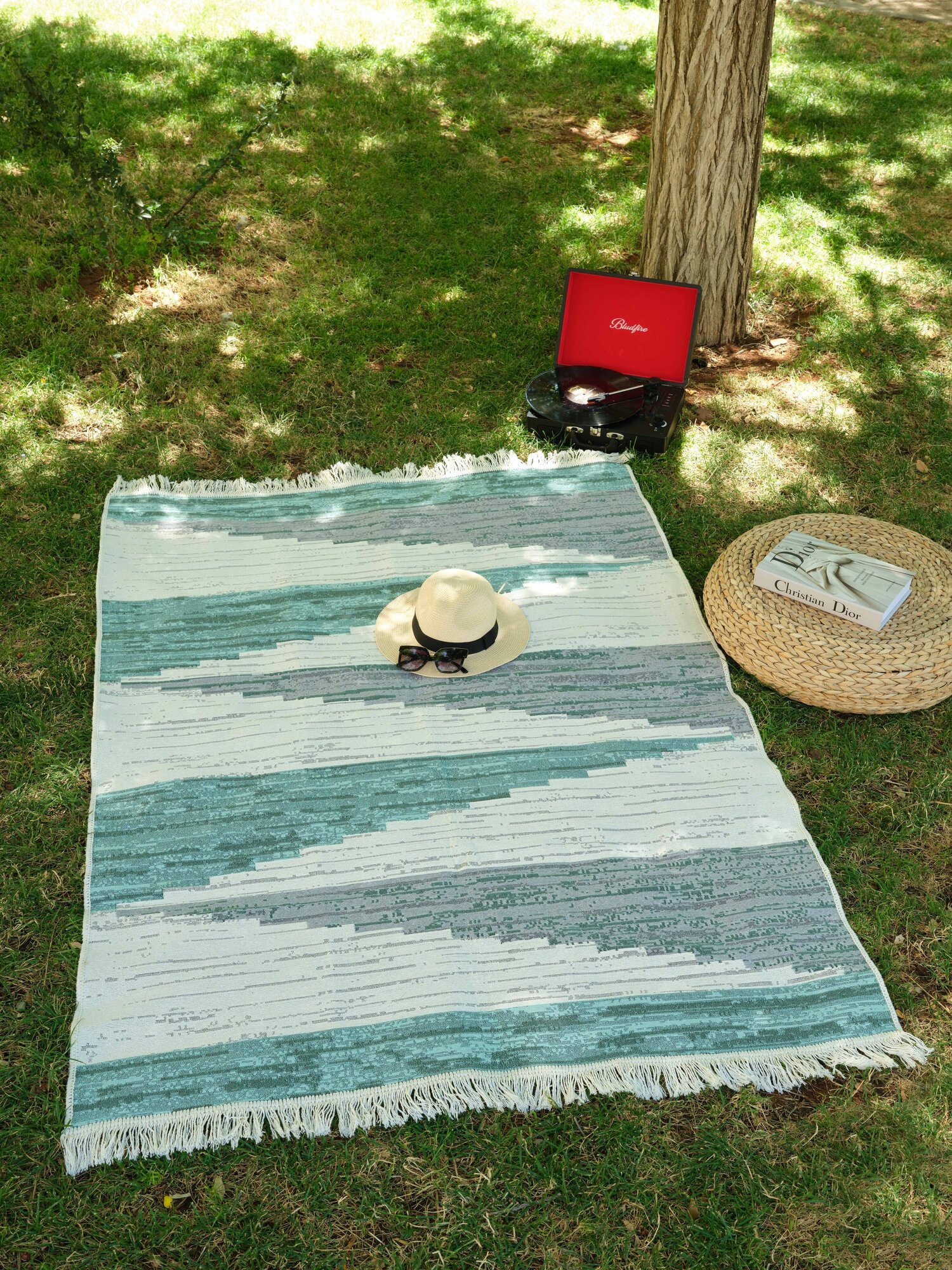 Ковер на пол двусторонний 80х200 см, натуральный хлопок, зеленый/серый