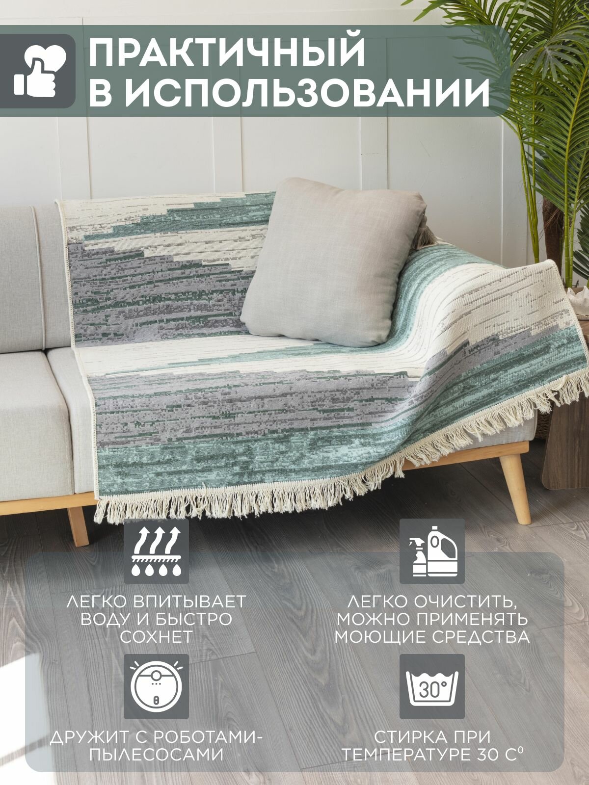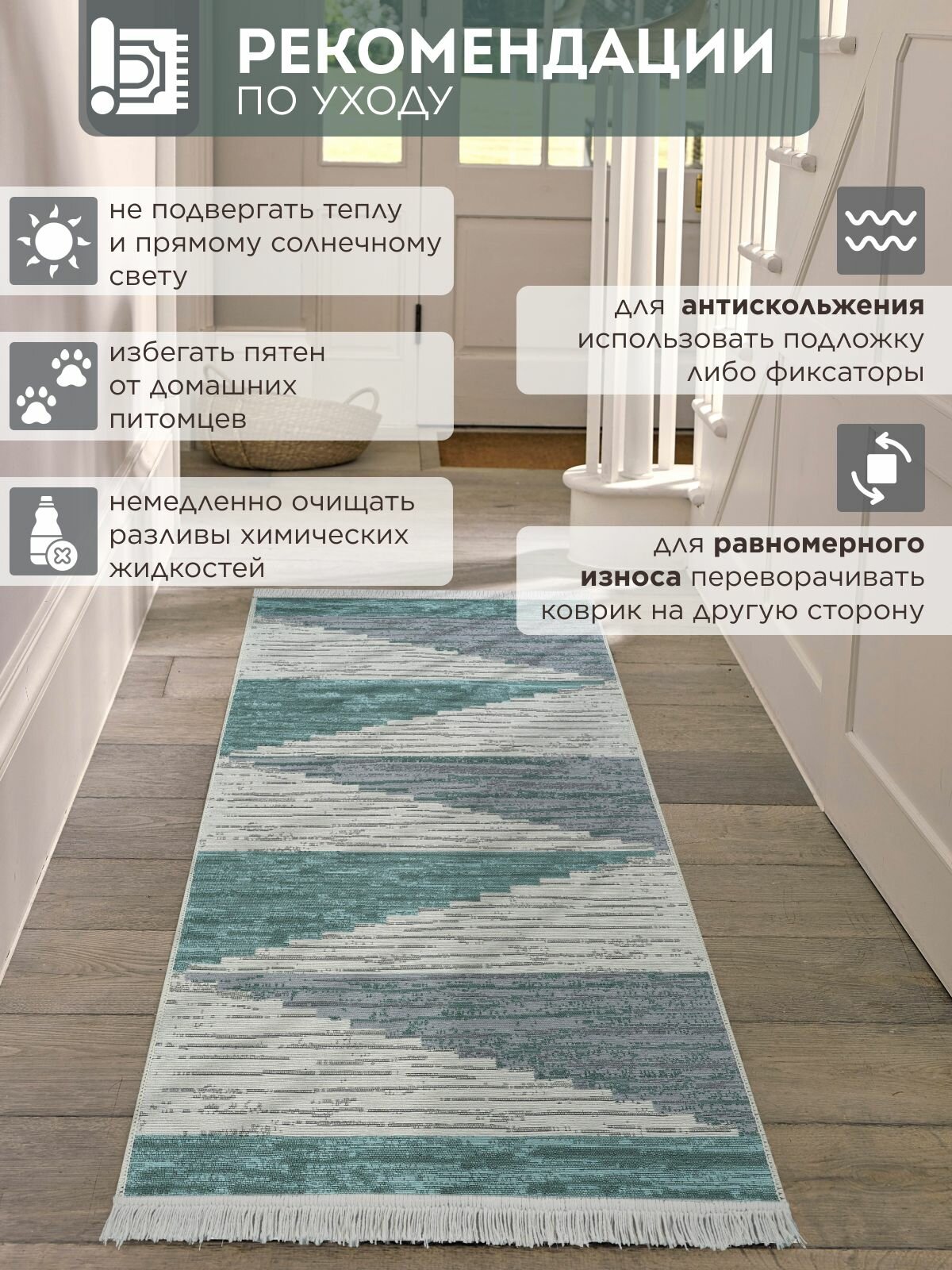 СохранитьКовер на пол двусторонний килим турецкий, 80х200 см, натуральный хлопок интересное: