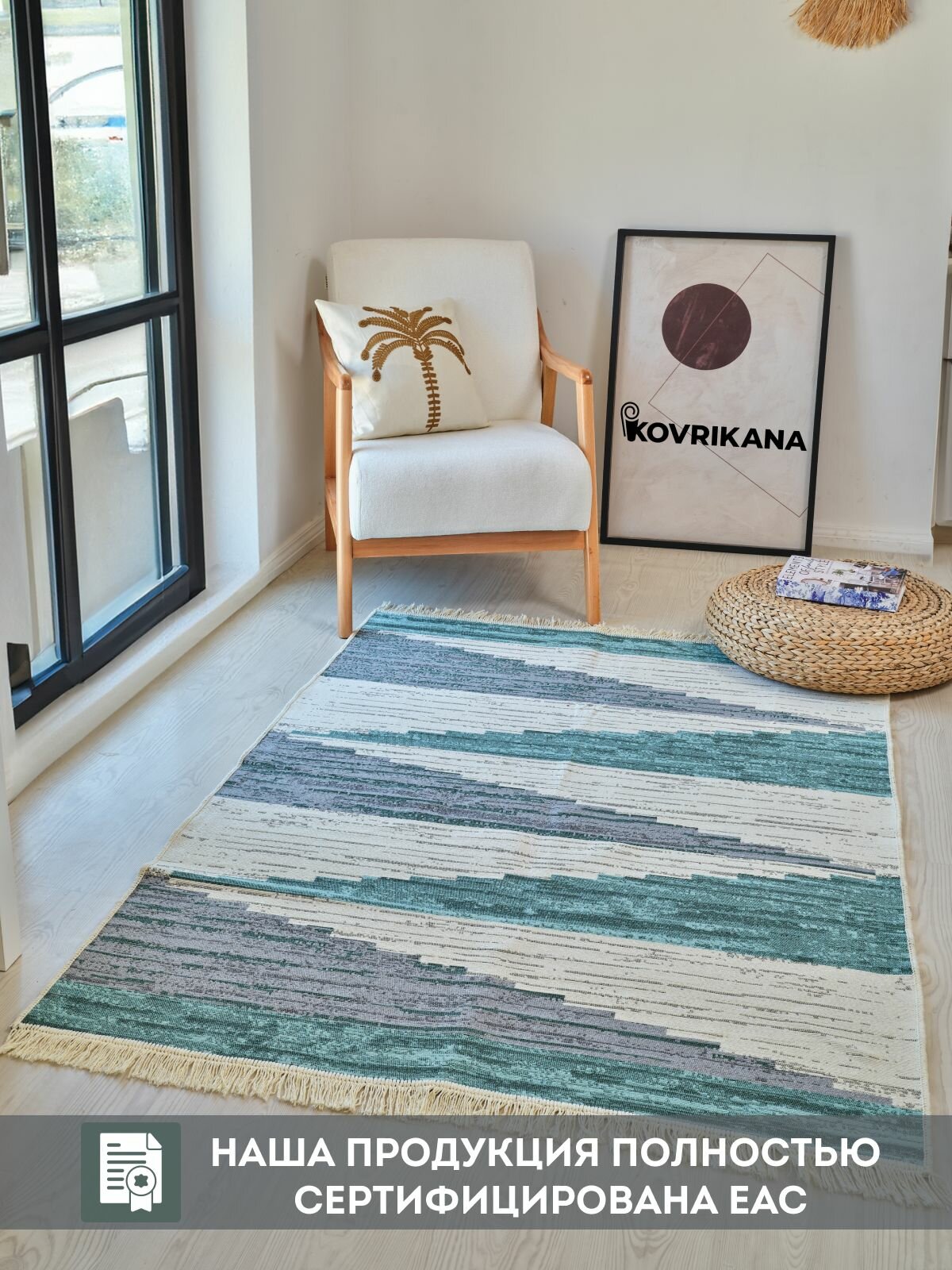 Ковёр KOVRIKANA, килим турецкий двусторонний, 80 на 200, натуральный хлопок