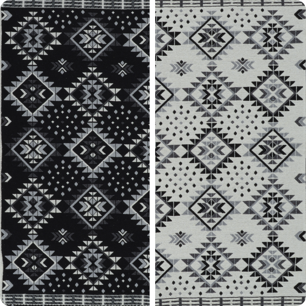 Ковер на пол двусторонний турецкий килим 80х200 см, натуральный хлопок, черно-белый