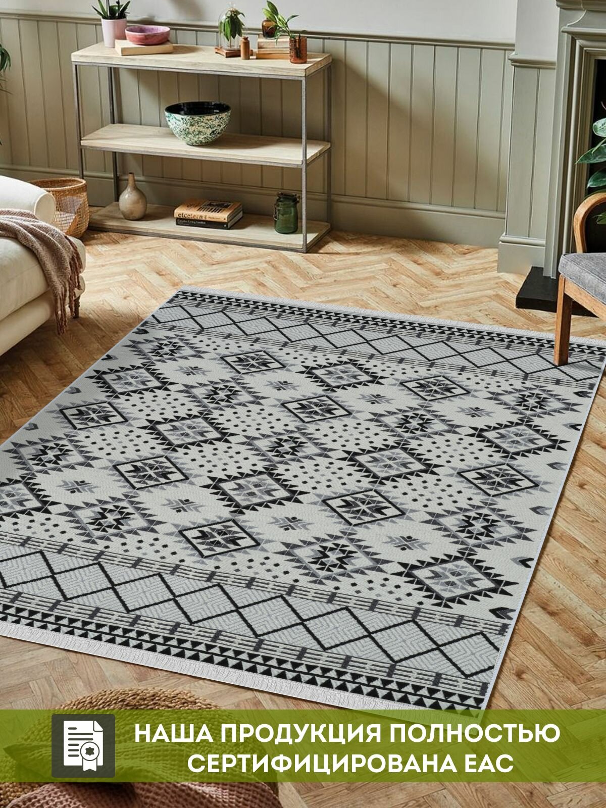 Ковер на пол двусторонний 80х200 см, натуральный хлопок, черный/серый, восточные узоры