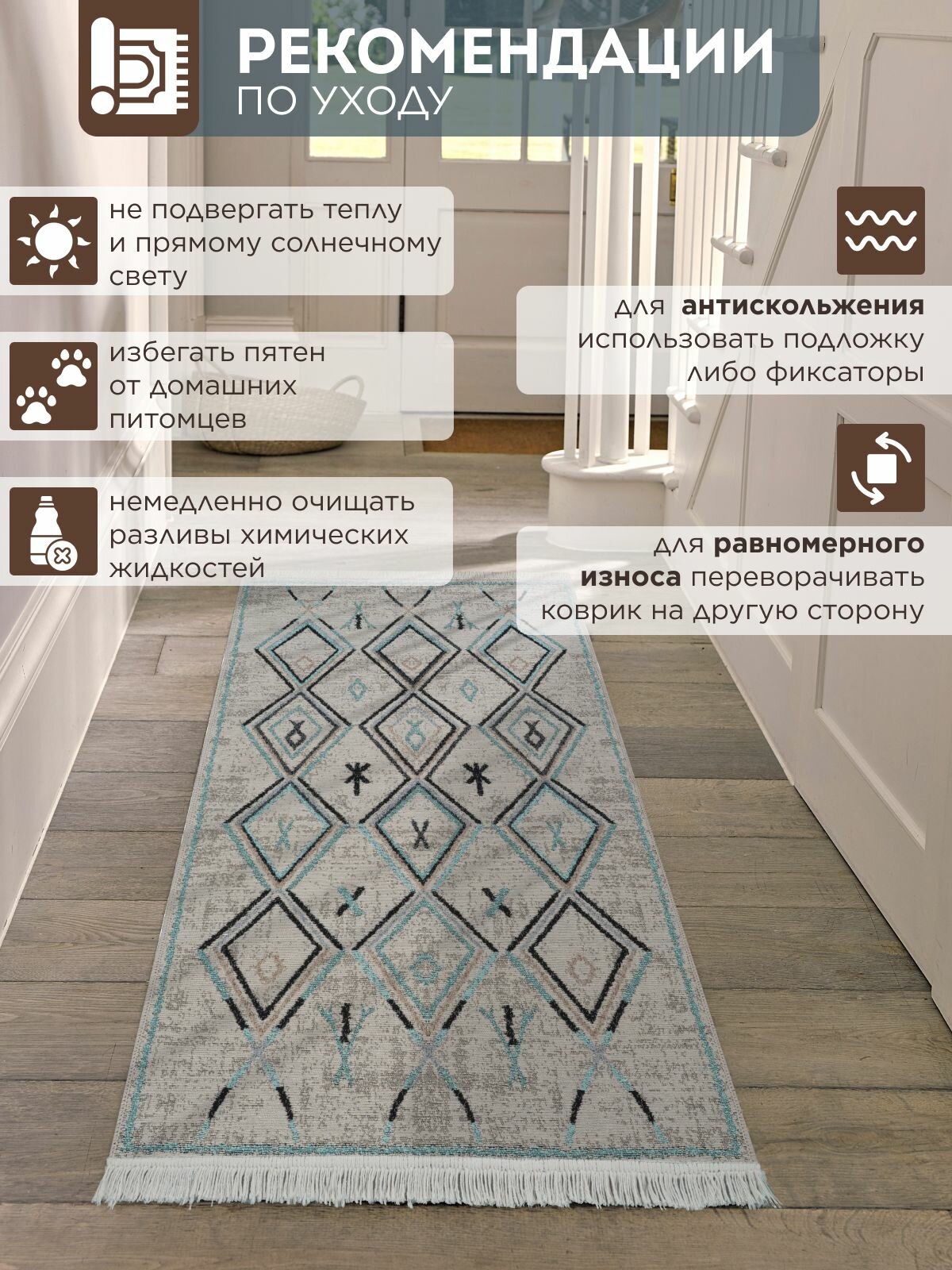 Ковер на пол двусторонний 80х200 см , натуральный хлопок, серый/синий, узор - ромбы
