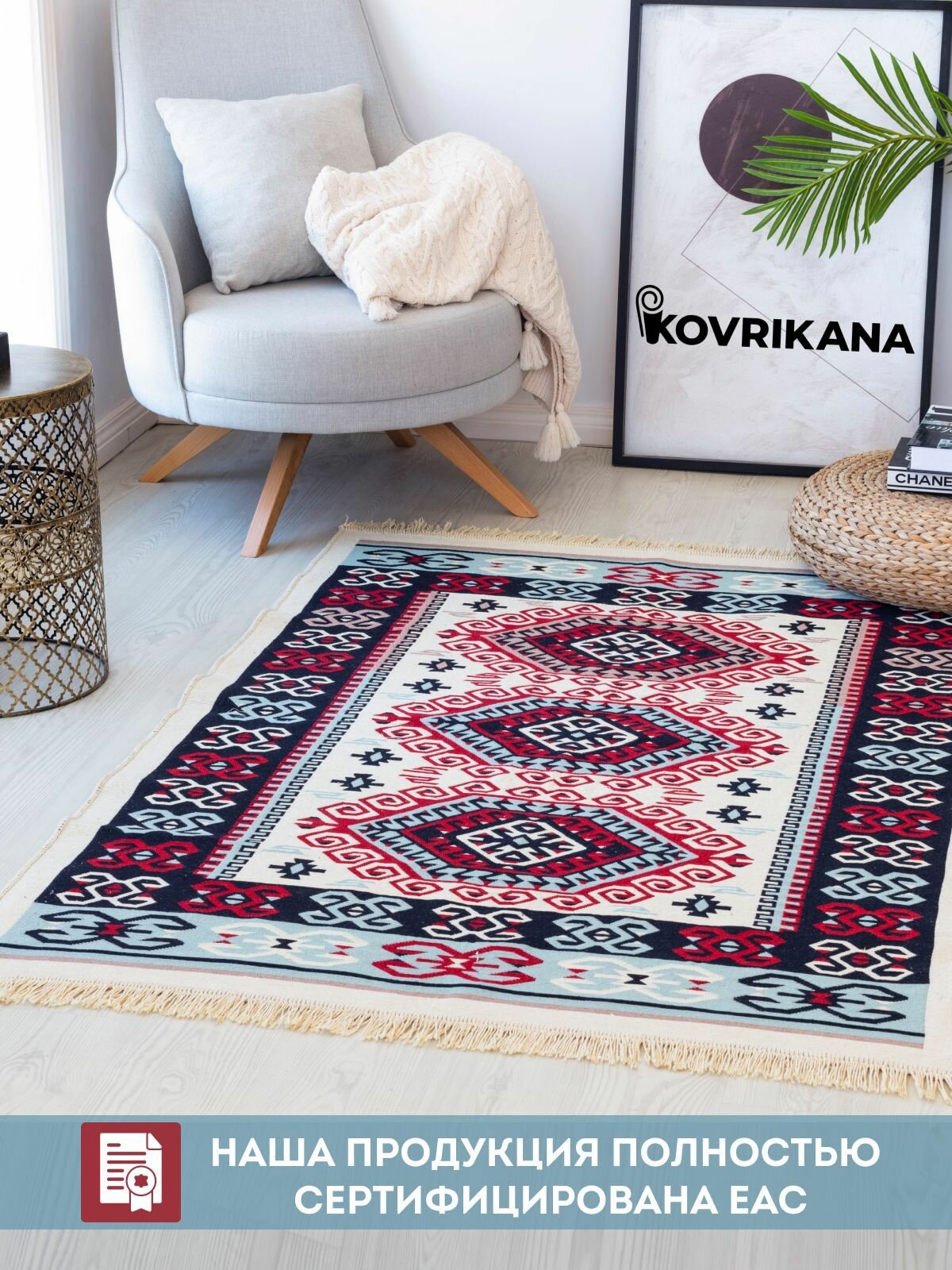 Ковёр KOVRIKANA, килим турецкий двусторонний, 80 на 200, натуральный хлопок
