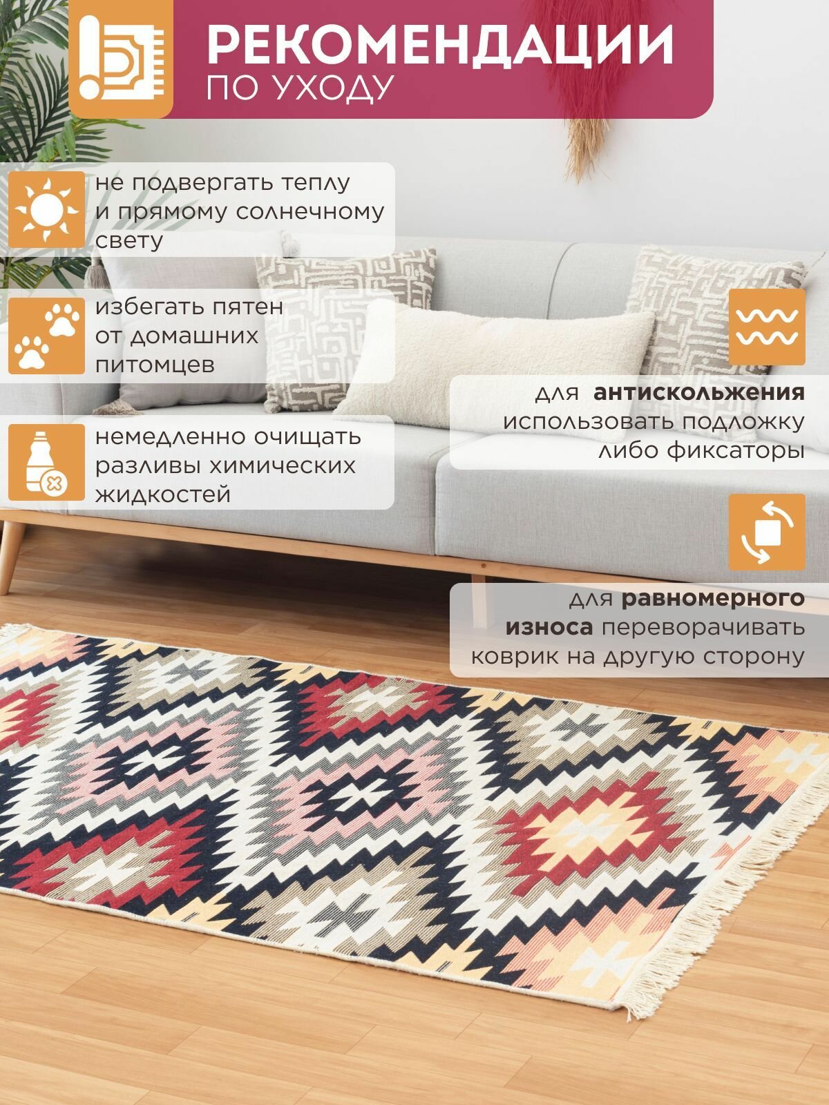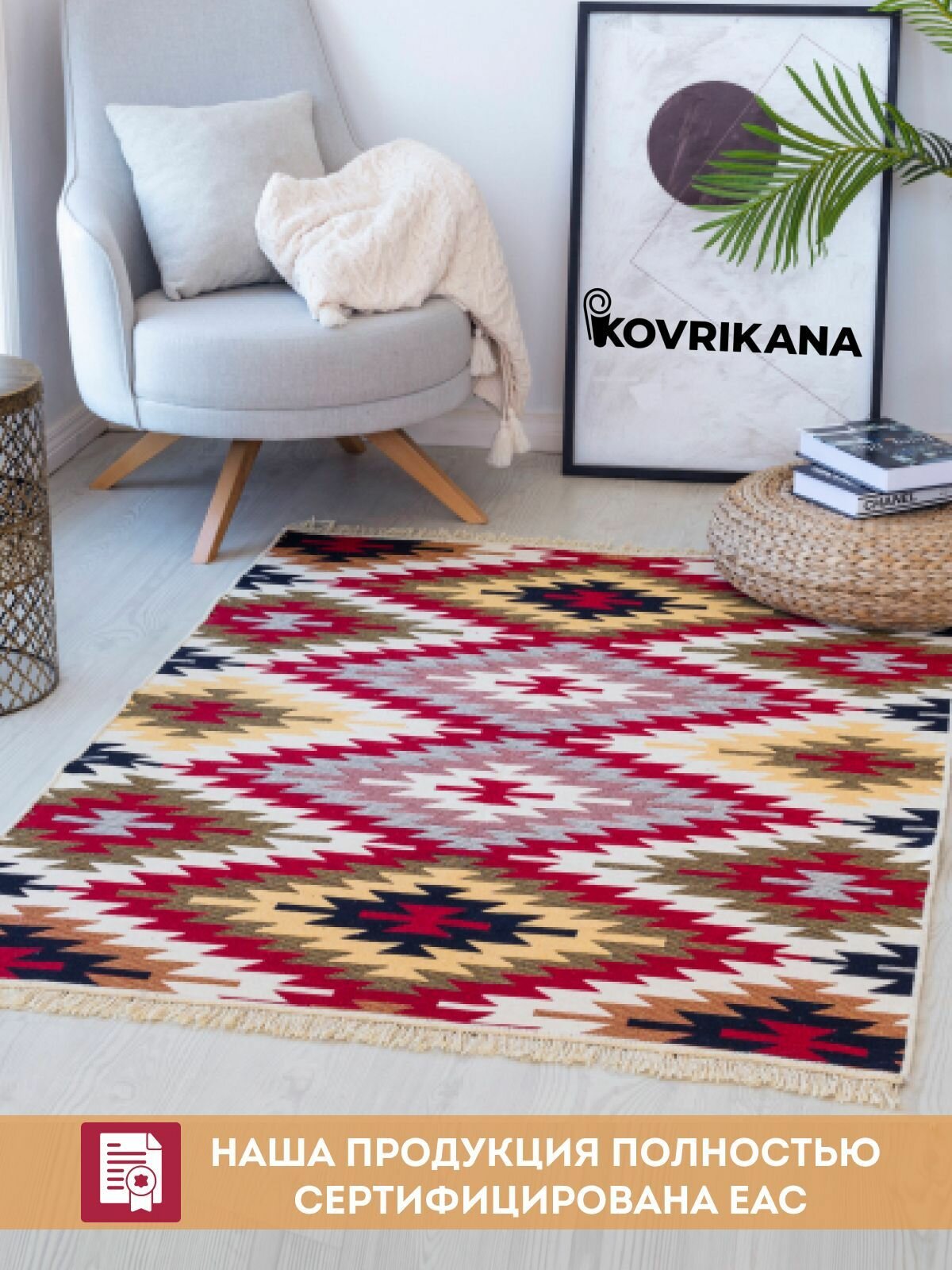Ковёр KOVRIKANA, килим турецкий двусторонний, 80 на 200, натуральный хлопок