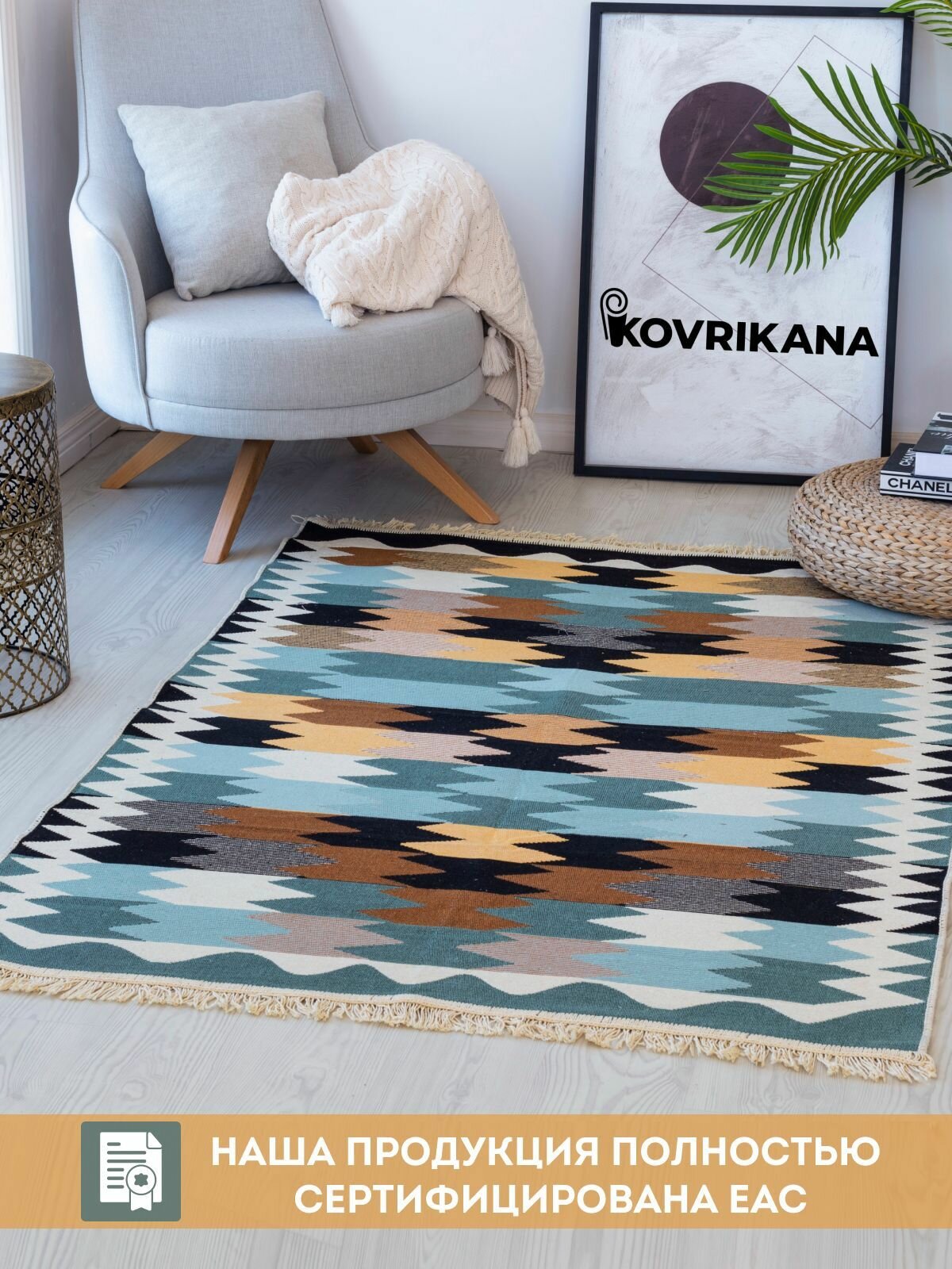 Ковёр KOVRIKANA, килим турецкий двусторонний, 80 на 200, натуральный хлопок
