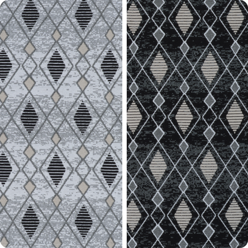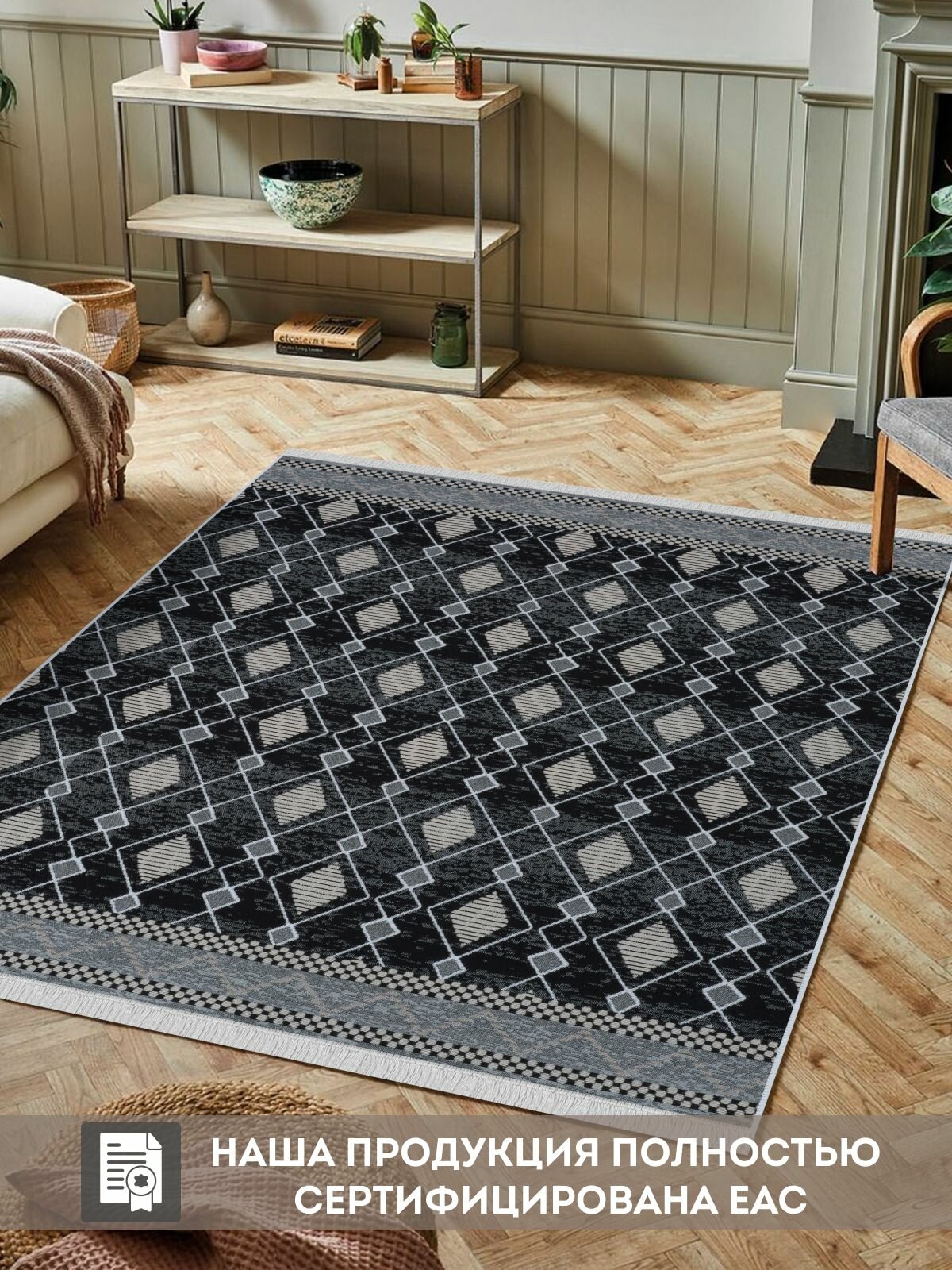 Ковер на пол двусторонний 80х200 см, натуральный хлопок, черный/серый, восточные узоры