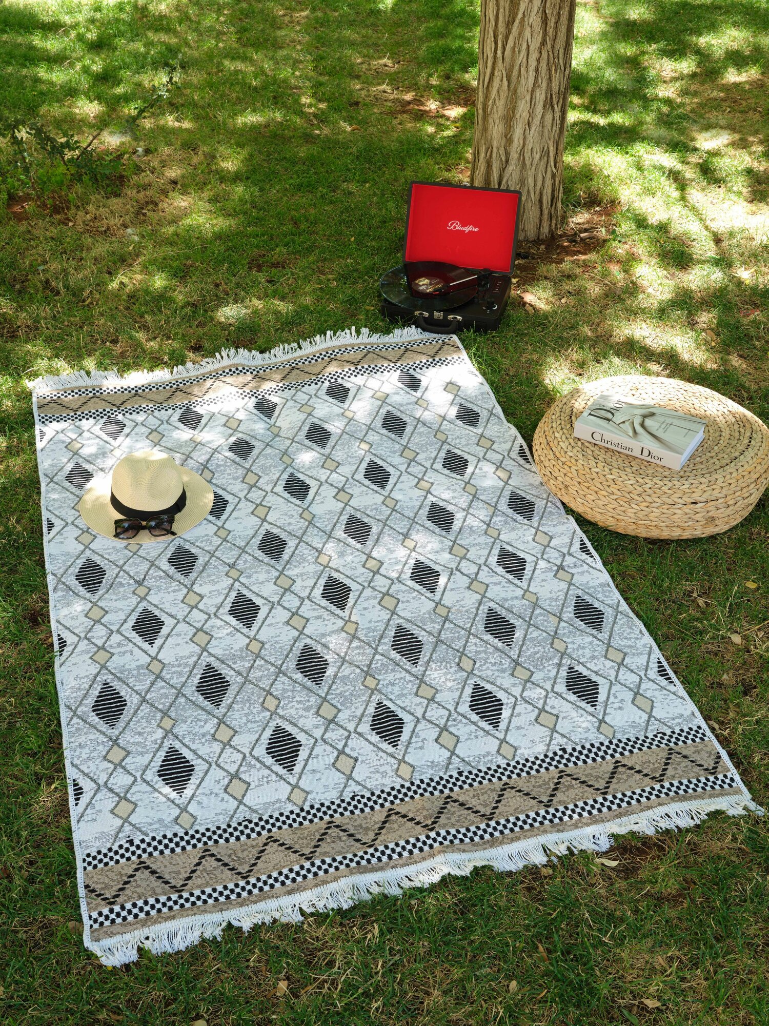 Ковер на пол двусторонний турецкий килим 80х200 см, натуральный хлопок, черно-белый