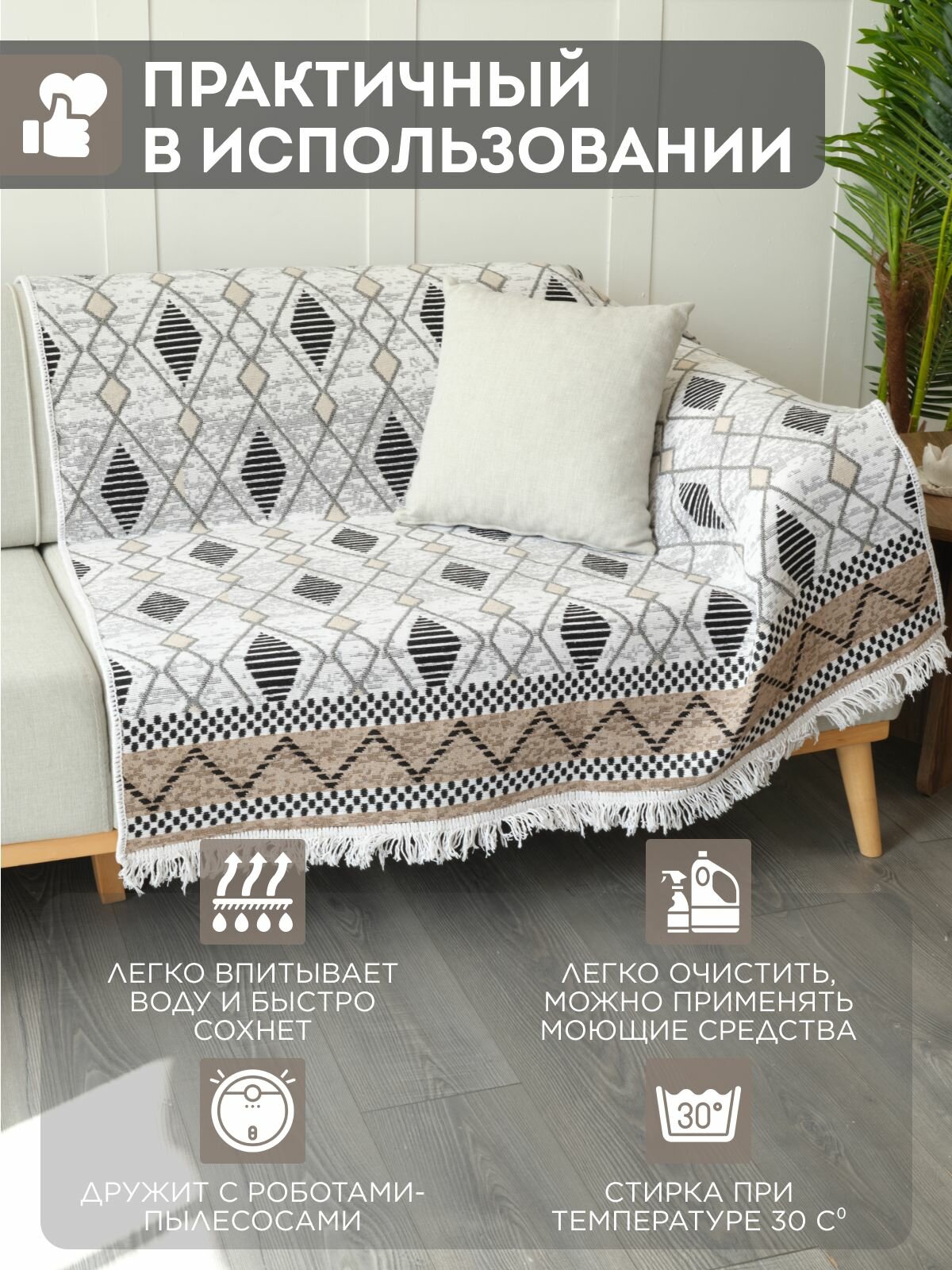 СохранитьКовер на пол двусторонний 80х200 см , натуральный хлопок, серый/синий, узор - ромбы интересное: