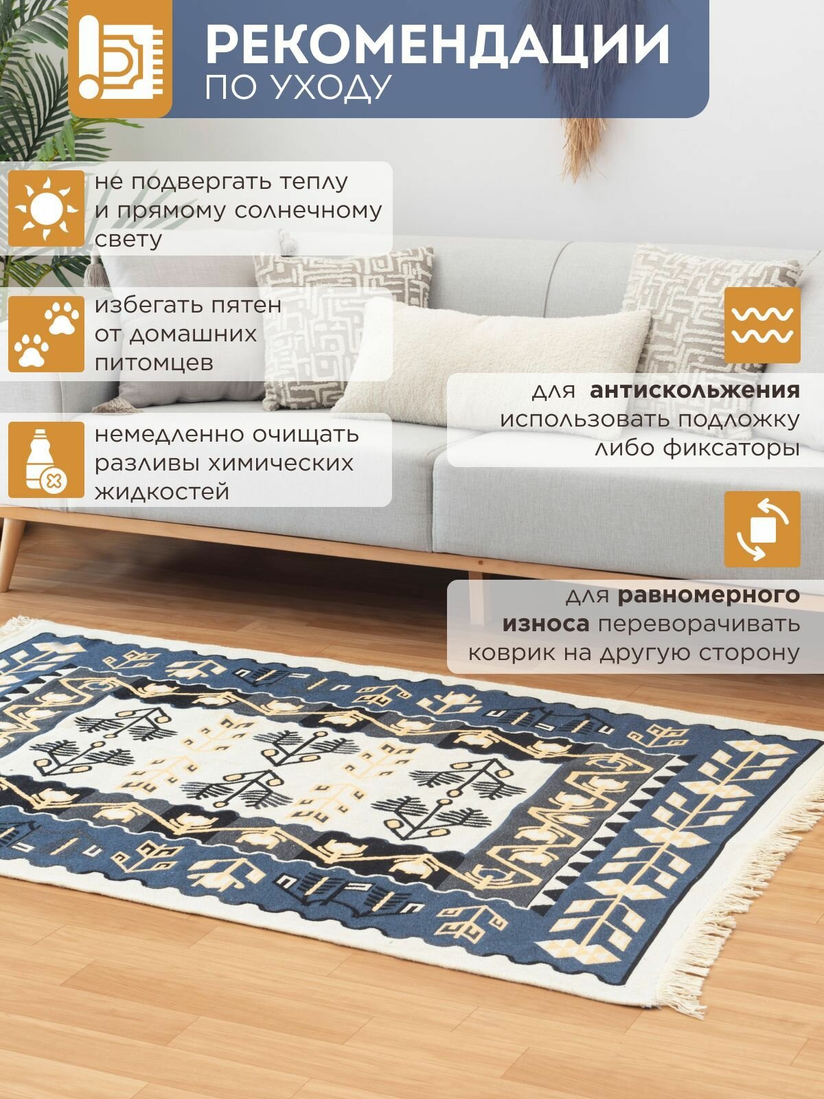 Ковёр KOVRIKANA, килим турецкий двусторонний, 80 на 200, натуральный хлопок