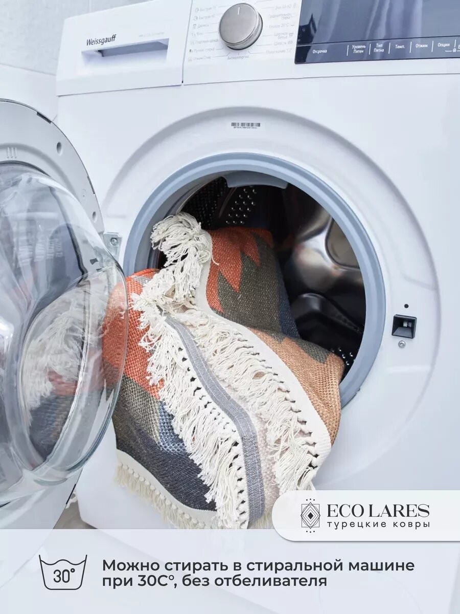 Ковер комнатный 120х180 в гостиную Eco Lares, с противоскользящей основой, на основе хлопка