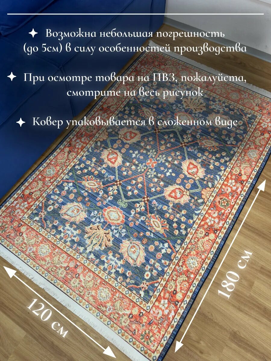 Ковер комнатный 120х180 см в гостиную, с противоскользящей основой, Турция
