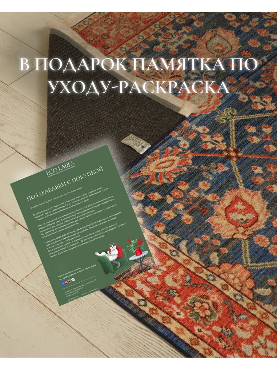 Ковер для дома 1,2 х 1,8 м, Турция, Eco Lares, не скользит, турция , хлопок