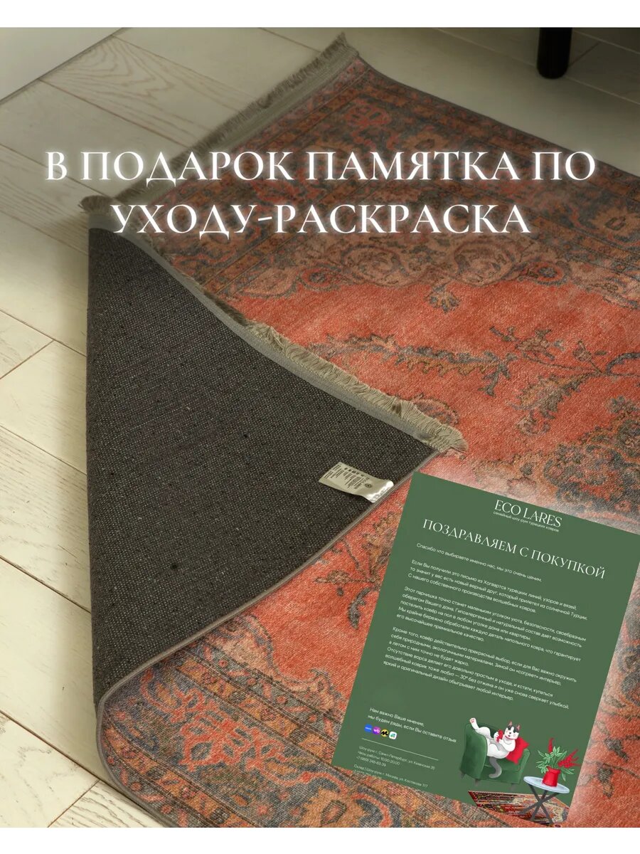Ковер для дома 1,2 х 1,8 м, Турция, Eco Lares, не скользит, турция , хлопок