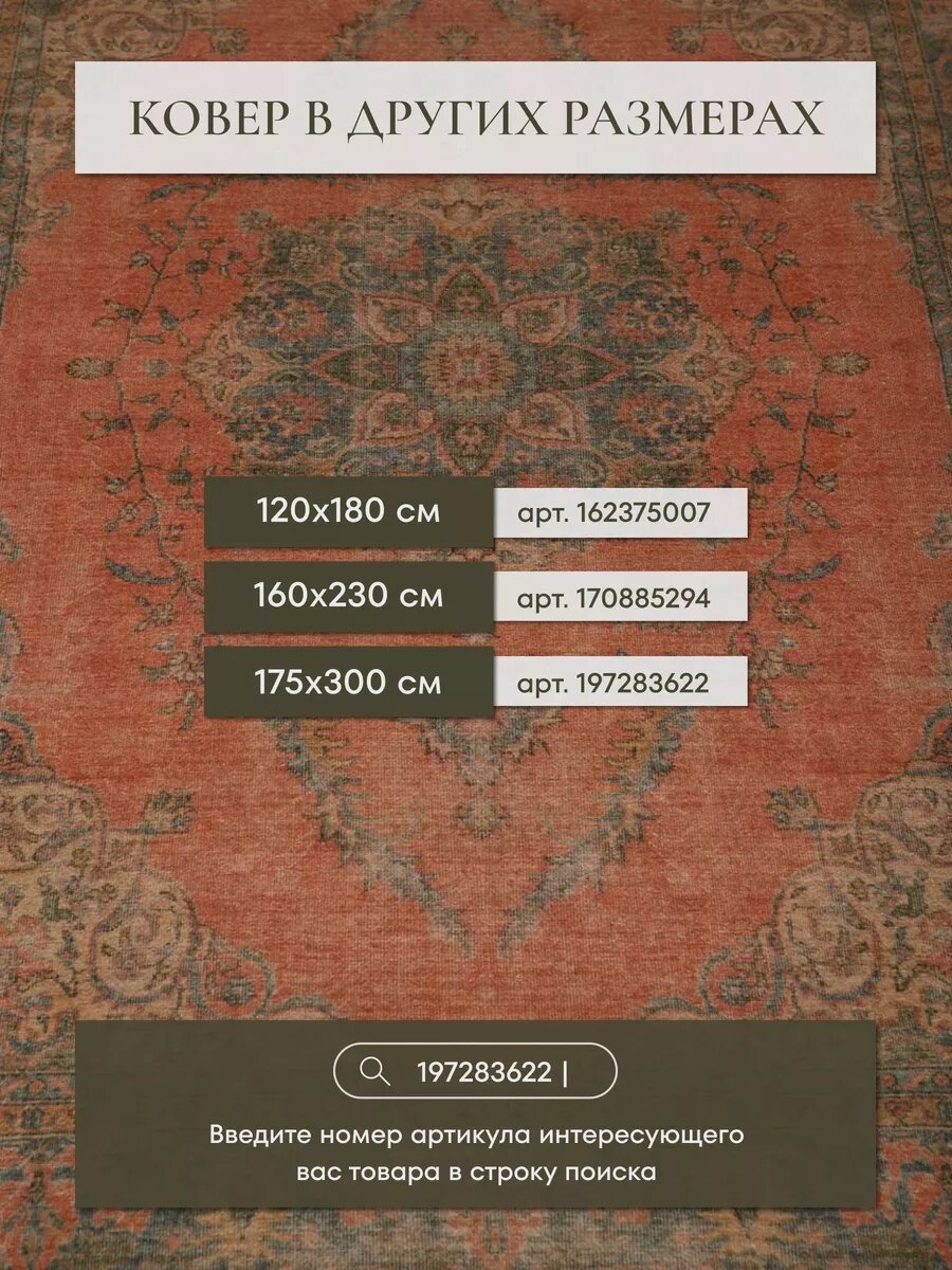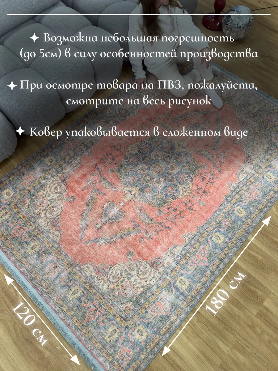 Ковер комнатный 120х180 см в гостиную, с противоскользящей основой, Турция