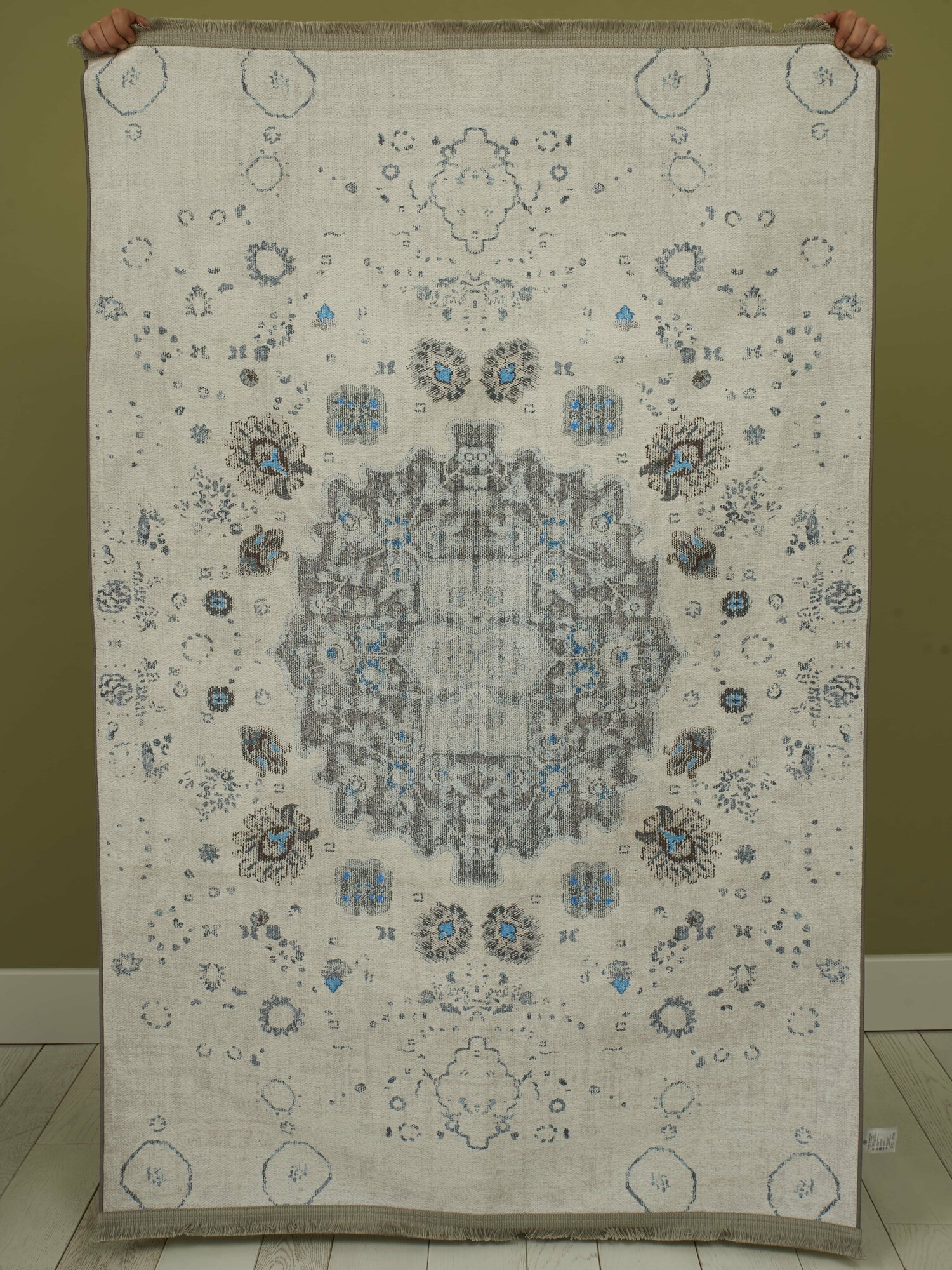 Ковер хлопоковый, Eco Lares 180х120, серый, серебристый, голубой, безворсовый