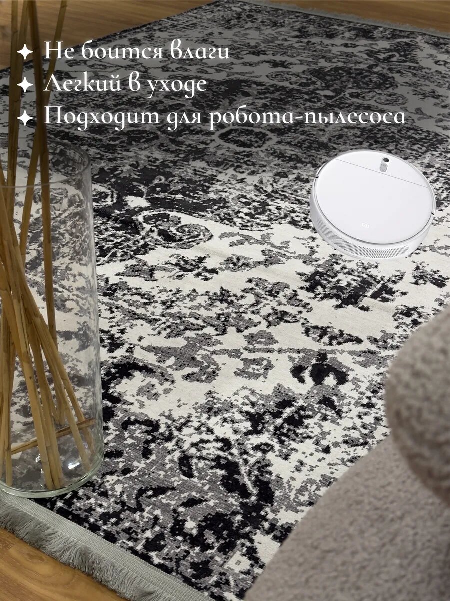 Ковер 120*180 мм, Турция, хлопок, серый/черный, безворсовый, 1 штука, не скользит