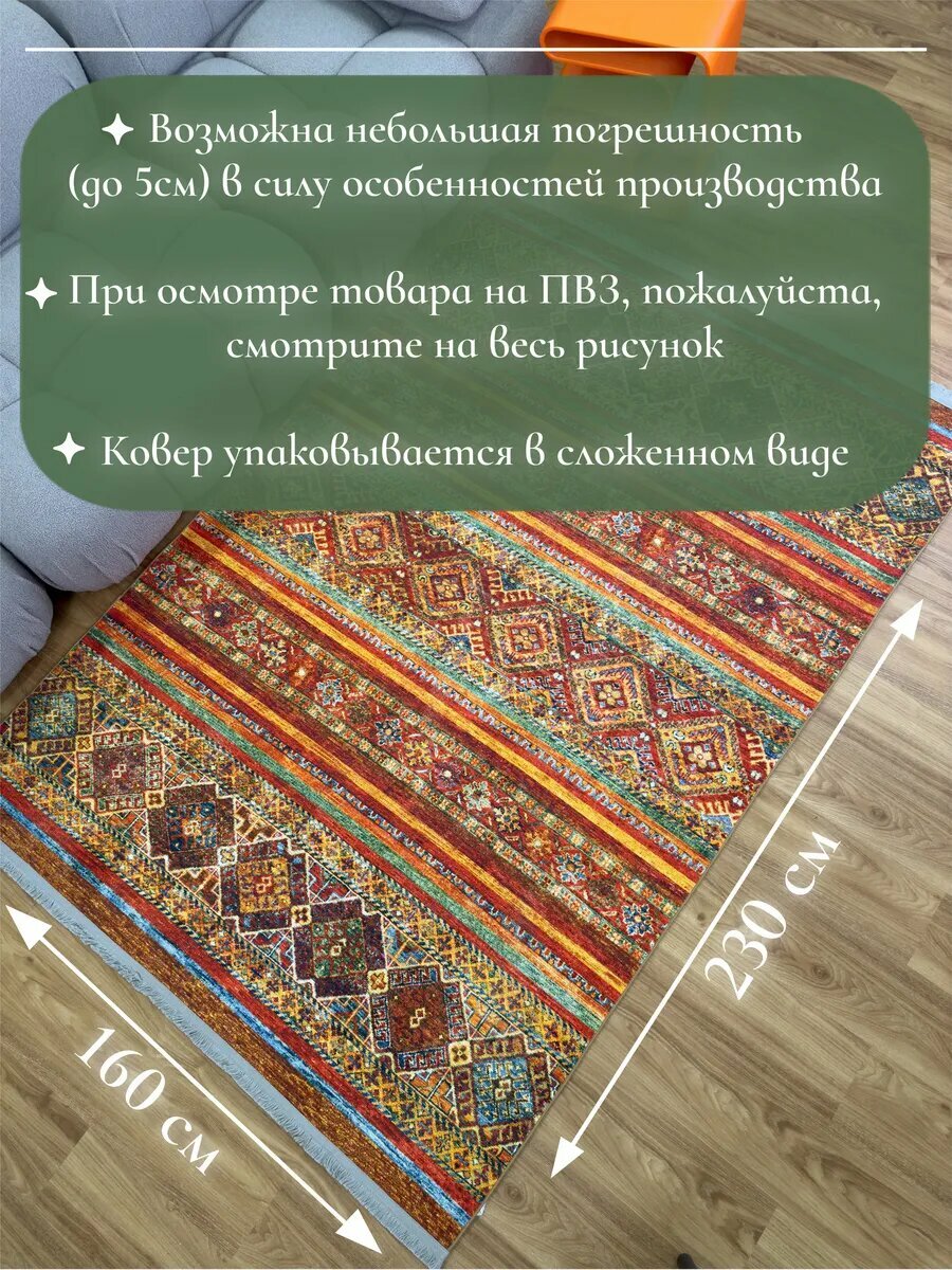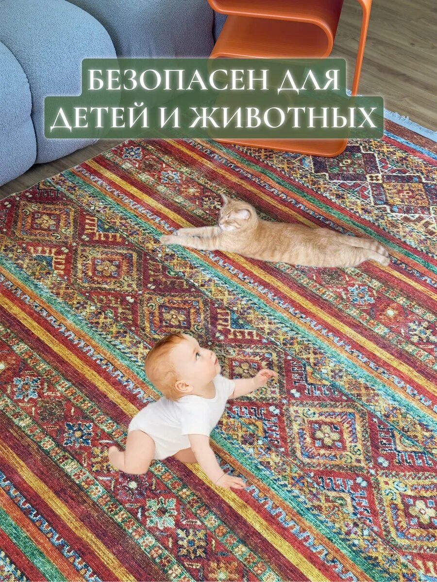 Ковер комнатный для дома Турция 120х180 Lares, не скользящий, на основе хлопка, прямоугольный