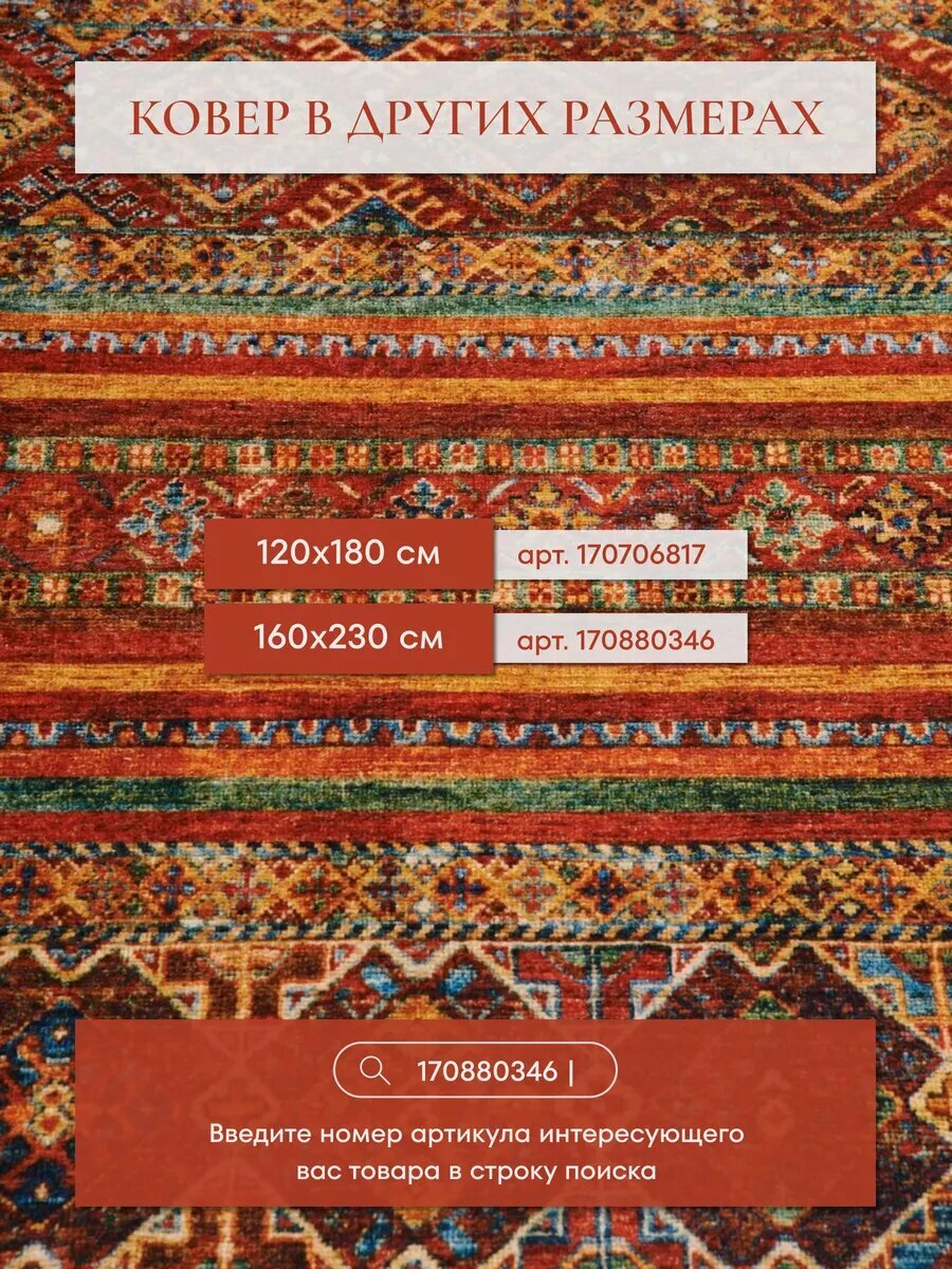 Ковер комнатный 120х180 см в гостиную, с противоскользящей основой, Турция