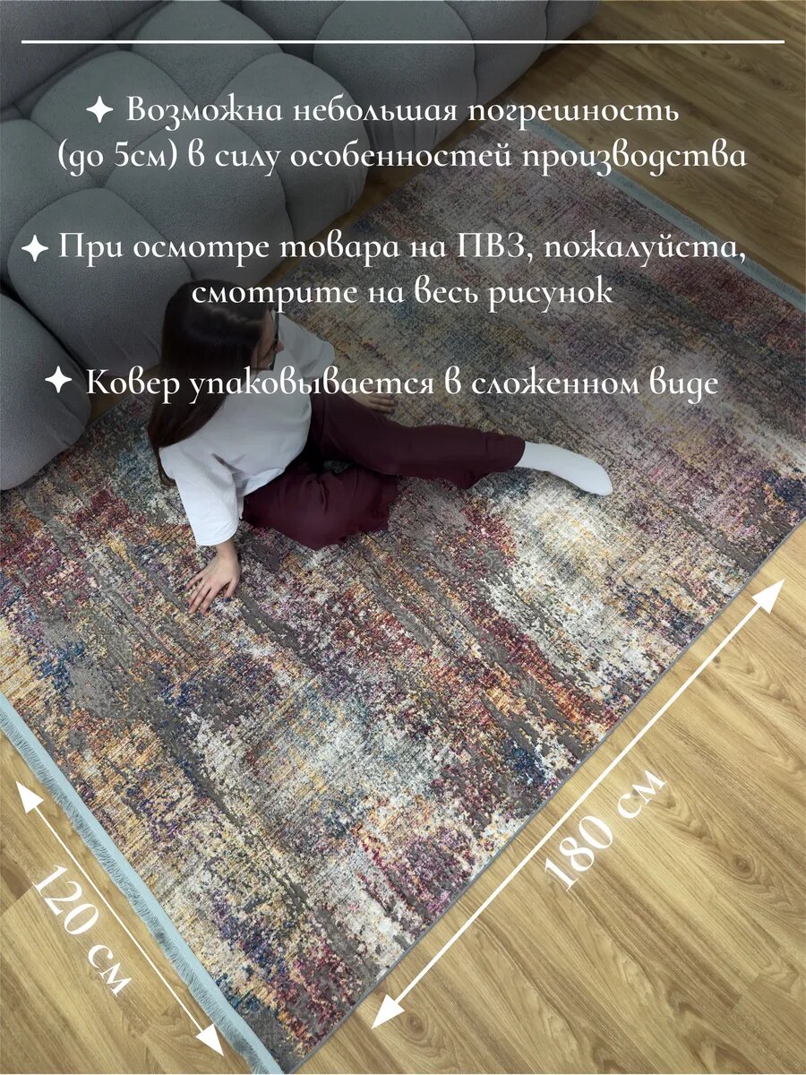 Ковер комнатный 120х180 см в гостиную, с противоскользящей основой, Турция