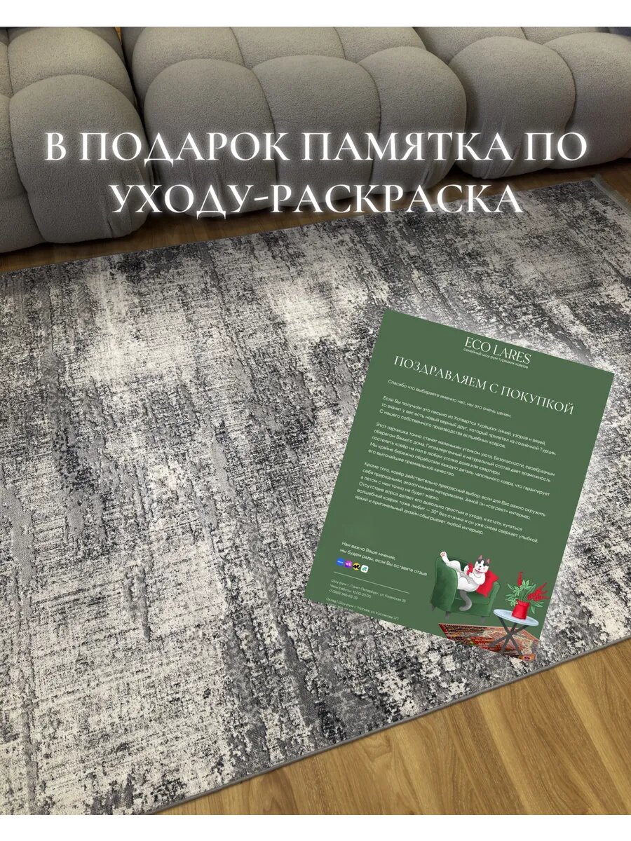 Ковер в комнату Турция 120х180 см в гостиную Eco Lares, с противоскользящей основой