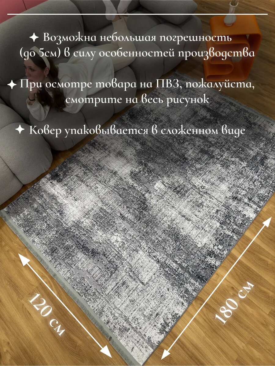 Ковер комнатный 120х180 см в гостиную, с противоскользящей основой, Турция