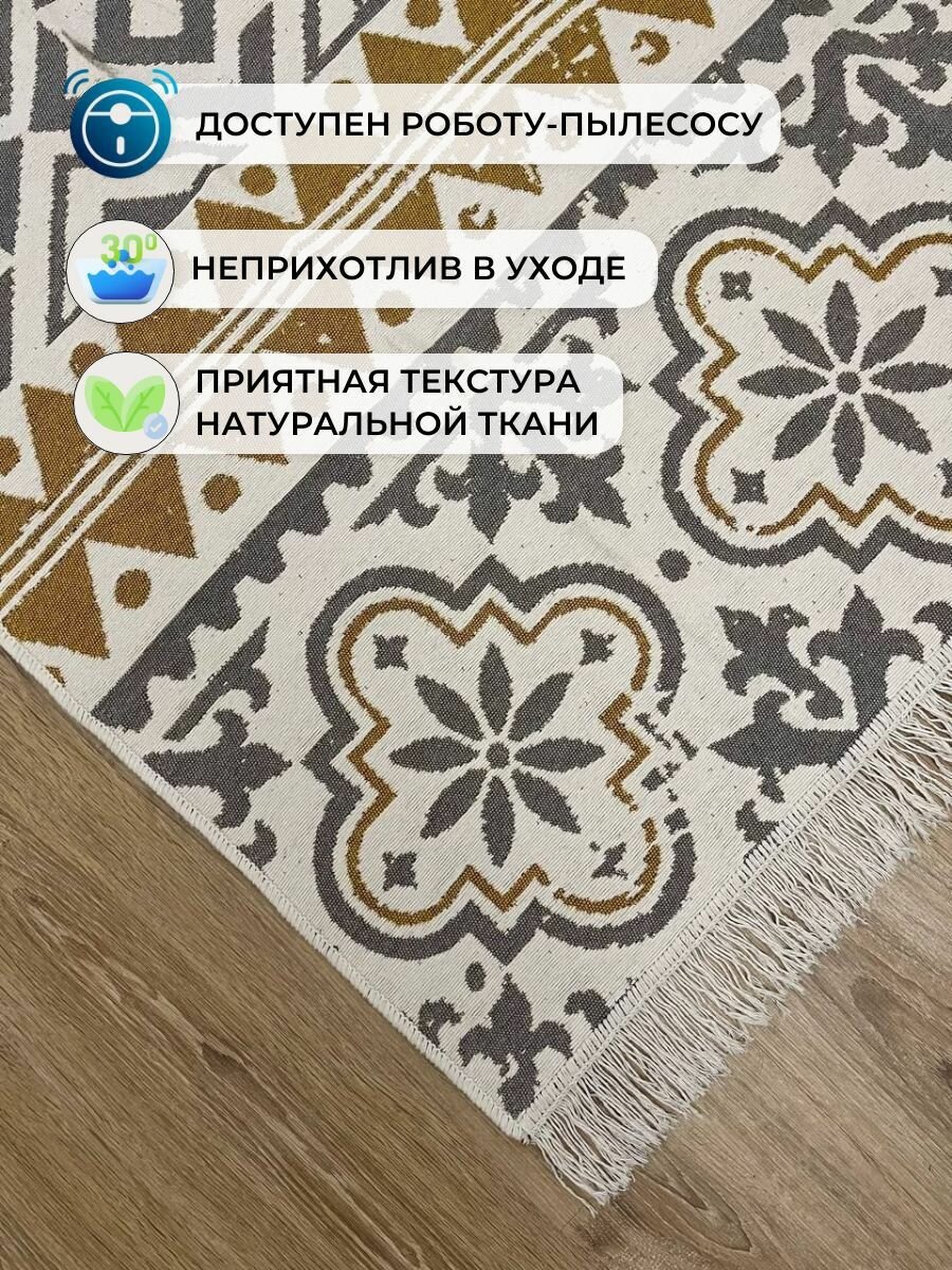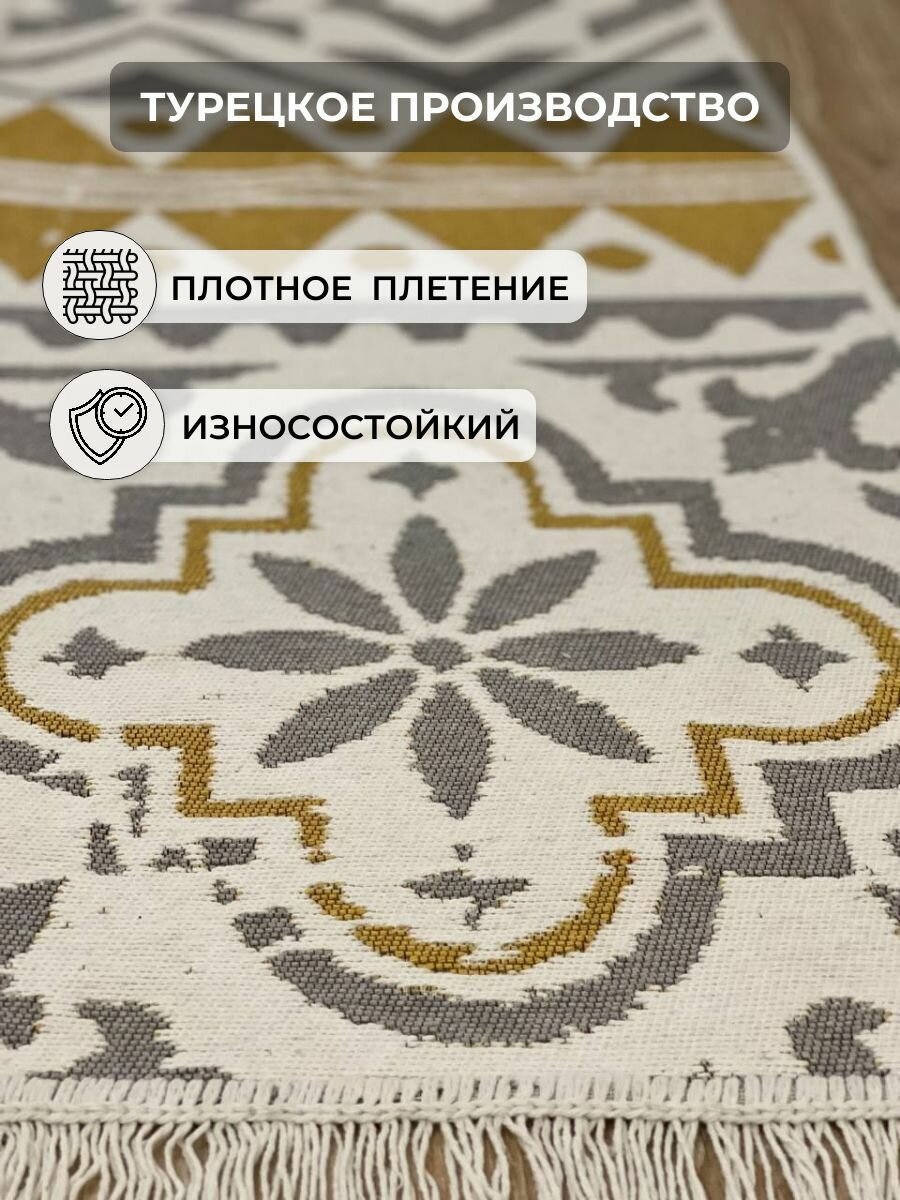 Ковер MUSAFIR Home килим хлопковый двусторонний 120 на 180 см / этно ковер в гостиную / безворсовый коврик интересное:
