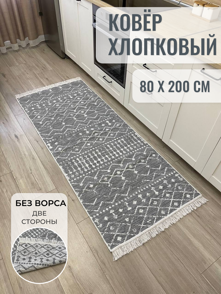 Купить Ковер дорожка хлопковый двусторонний 80×200 см / турецкий килим без ворса / прикроватный ковер Musafir Home