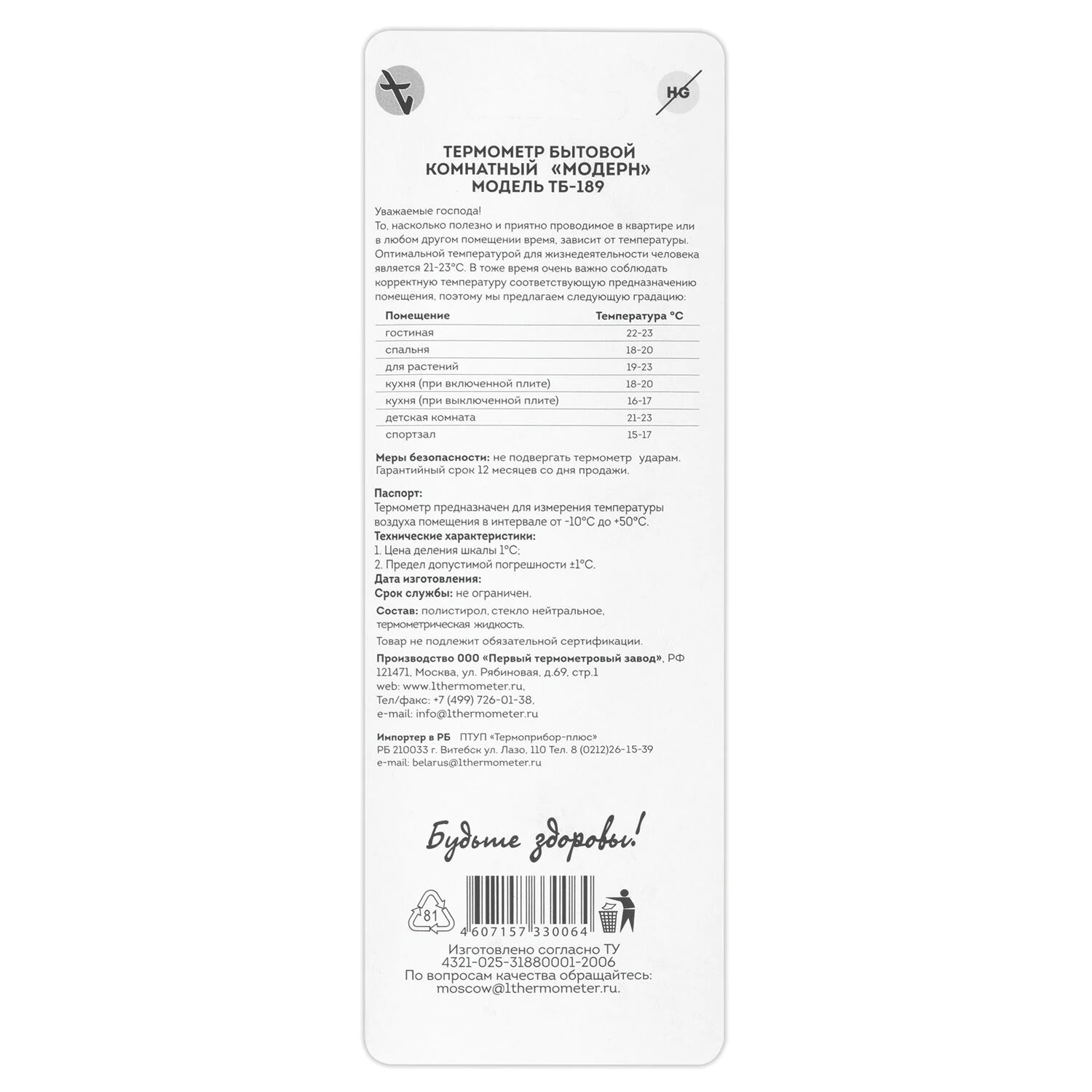 Ниже Вы можете прочитать отзывы на Термометр комнатный настенный, градусник бытовой для дома, крепление на гвоздик, диапазон измерения от -10 до +50°C, Птз, Тб-189, 671372, ознакомится с подробными характеристиками, посмотреть интересные обзоры и фотографии на Термометр комнатный настенный, градусник бытовой для дома, крепление на гвоздик, диапазон измерения от -10 до +50°C, Птз, Тб-189, 671372.